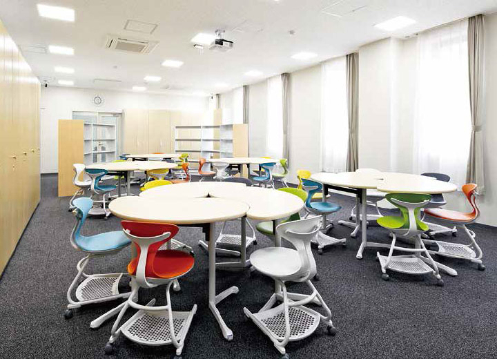 キャンパス内は全エリアでWi-Fiが自由に使えます。また、在学中はもちろん、卒業後も容量無制限のクラウドが使い放題。自宅でもオンラインで復習ができ習熟度・理解度をアップします。さらにほとんどの教室にはプロジェクターと大型スクリーンを設置しているほか、就職試験の面接などで使用するオンラインブースも完備しています。