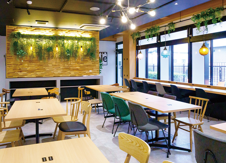 課題の合間にホッとひと息つけるカフェスペース。