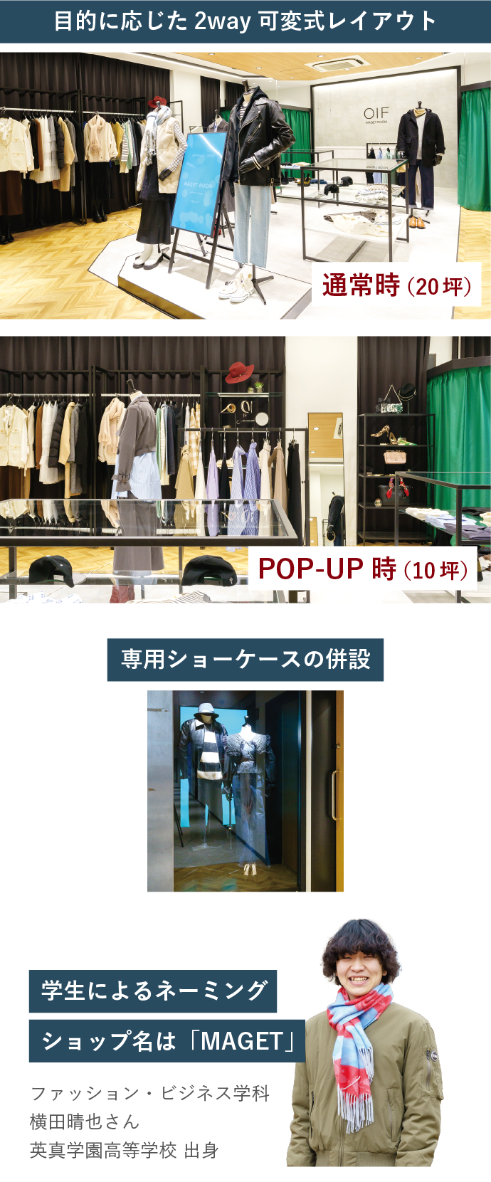 お店やブランドの魅力を伝え「ファン」を生み出す存在。そんなファッションアドバイザーを育成するため、レジカウンターや什器、照明、フィッティングルームからバッグヤード収納までを完備した本格的なショップ教室を新設。販売ロールプレイングコンテストを主催し、次世代の育成にも注力しているTSIがデザイン・設計を担当。アパレル大手企業による「プロ目線」でプロデュースした、実践的なショップ教室です。