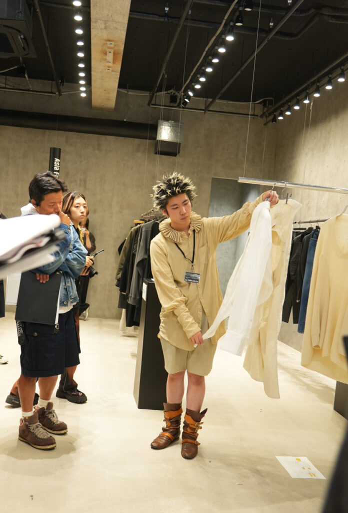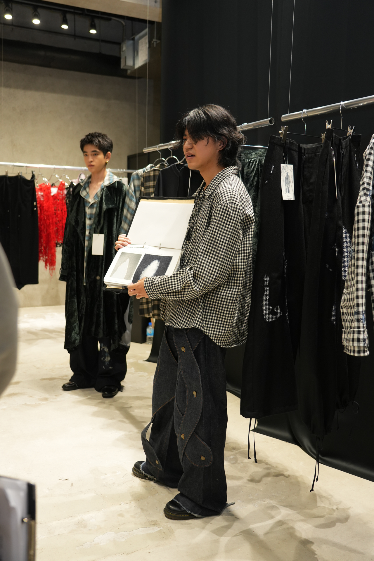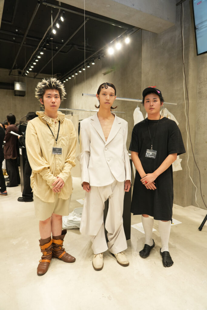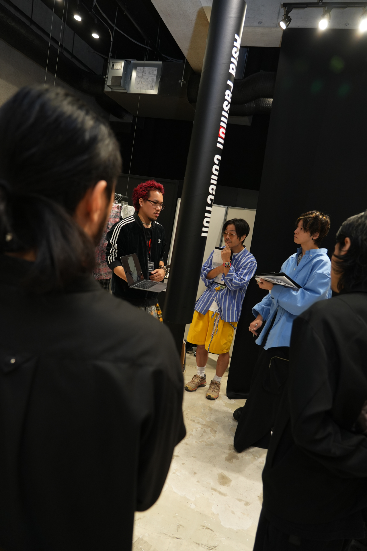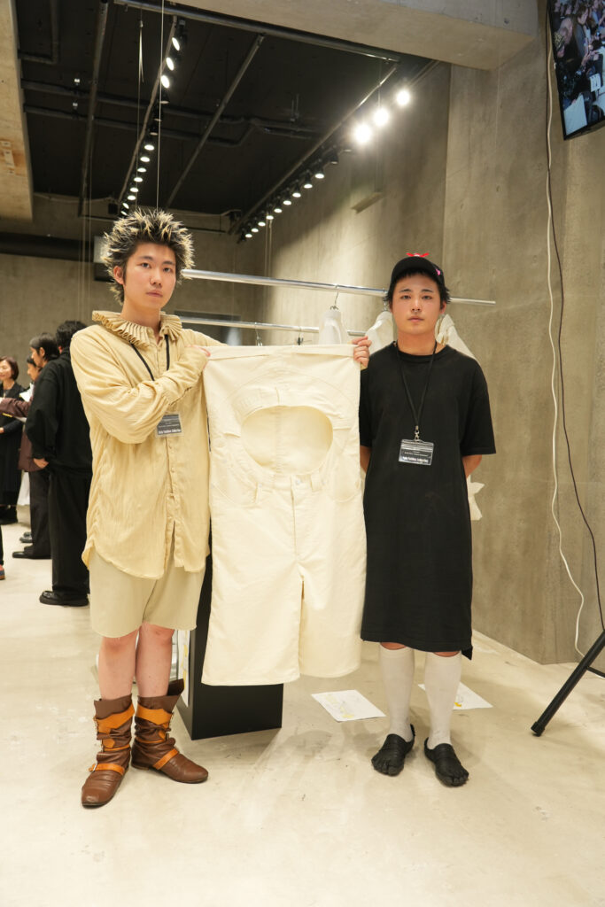 代官山「THE FACE DAIKANYAMA」で開催された国内最終審査会では、展示会形式での審査を実施。WWD JAPAN 編集長の村上 要氏や 三越伊勢丹 リ・スタイル バイヤー橋本 航平氏、MASU デザイナー 後藤 愼平氏ら、第一線で活躍する審査員が、ブランドとしての市場性や事業展開力を多角的に評価しました。作品一点を評価するデザインコンテストとは異なり、国際的な活躍を想定し「ブランド単位」で挑む当コンテストにおいては、在学中よりマイ・ブランドをもって活動する「スーパーデザイナー学科」の実力が遺憾なく発揮されています。