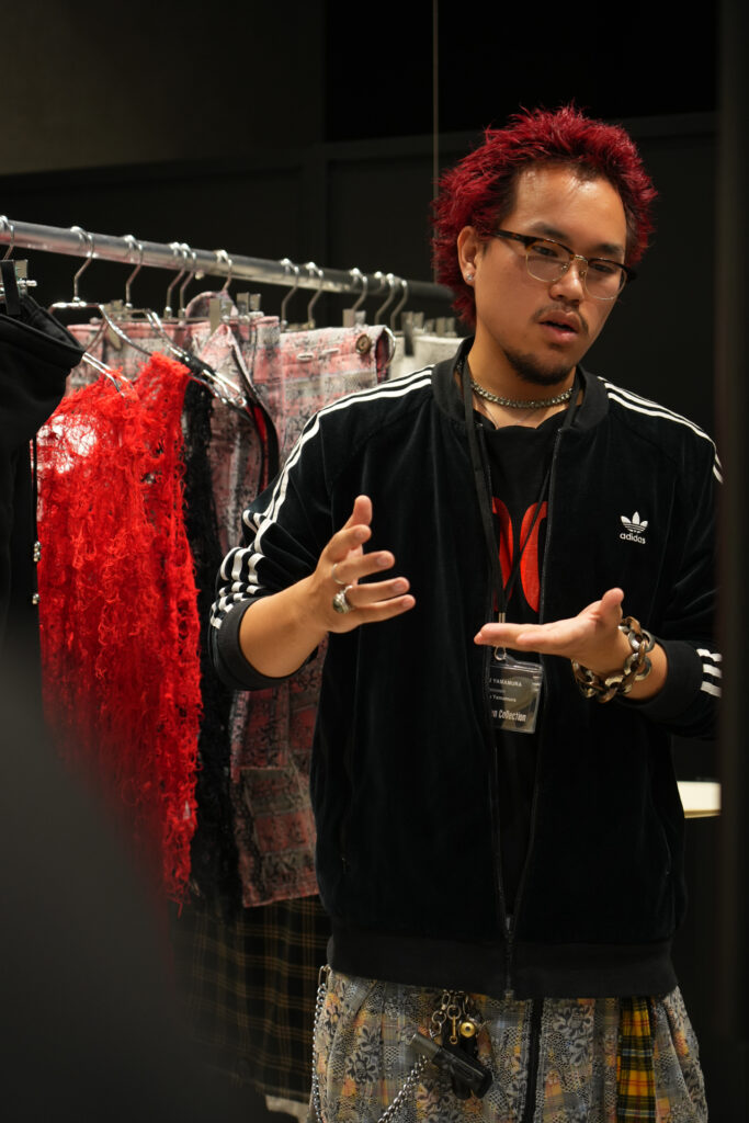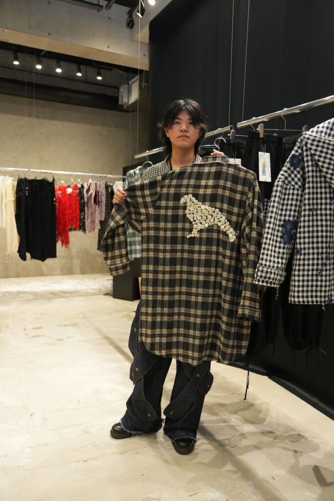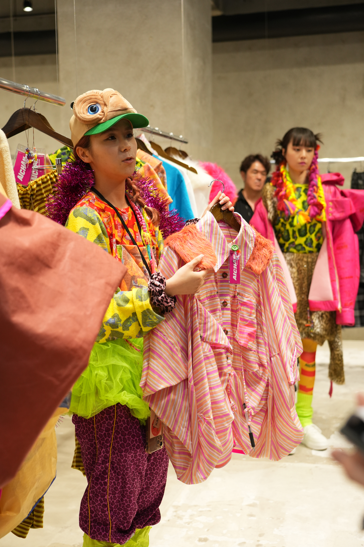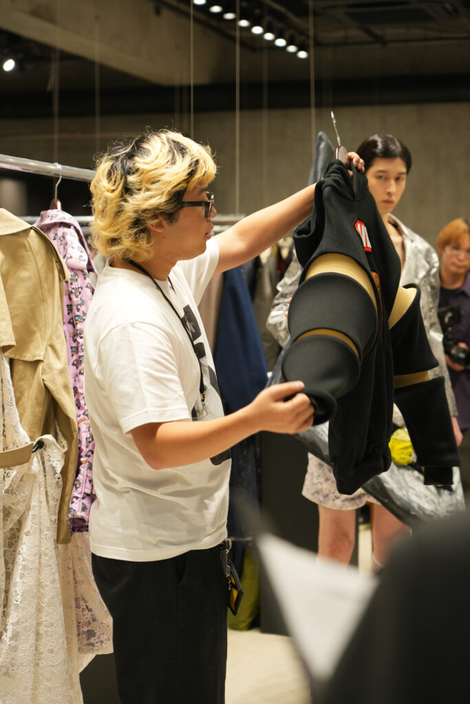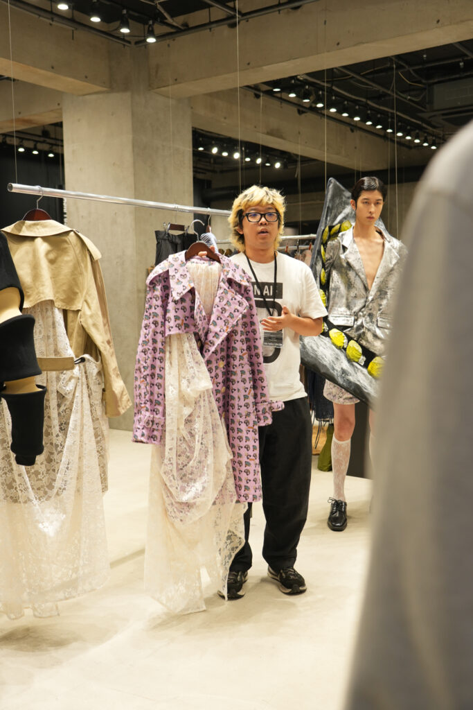 代官山「THE FACE DAIKANYAMA」で開催された国内最終審査会では、展示会形式での審査を実施。WWD JAPAN 編集長の村上 要氏や 三越伊勢丹 リ・スタイル バイヤー橋本 航平氏、MASU デザイナー 後藤 愼平氏ら、第一線で活躍する審査員が、ブランドとしての市場性や事業展開力を多角的に評価しました。作品一点を評価するデザインコンテストとは異なり、国際的な活躍を想定し「ブランド単位」で挑む当コンテストにおいては、在学中よりマイ・ブランドをもって活動する「スーパーデザイナー学科」の実力が遺憾なく発揮されています。