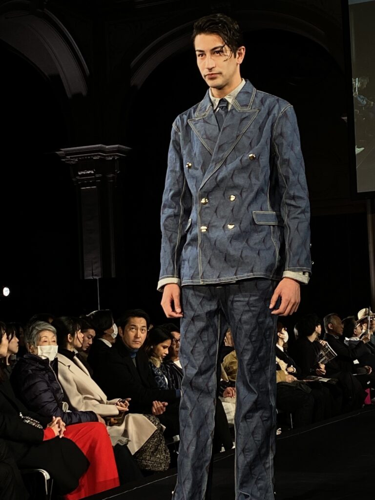 宇髙さんの作品は、シンプルなテーラードジャケットのシルエットに、刺繍などの手作業で立体的な柄を表現したり、1枚のジャケットでシャツやネクタイを着ているようなギミックを取り入れるなど、多彩なテクニックに評価が集まりました。
