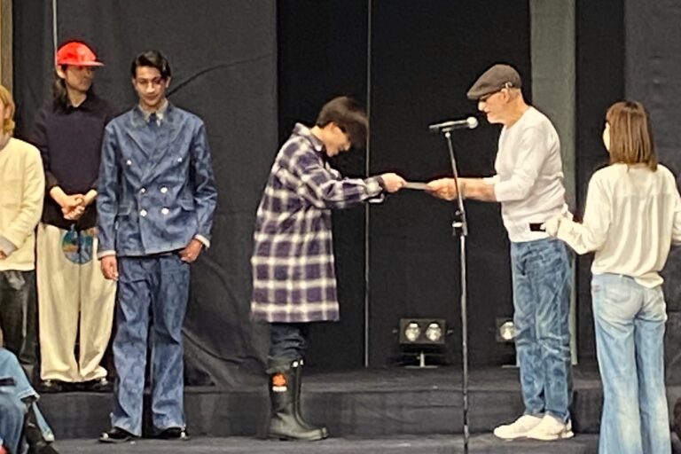 ドクターデヴィアス化粧品株式会社が手掛けるラグジュアリーデニムブランド「G-FRANCO」が主催するデニムデザインコンテスト「G-FRANCO Denim Disegno Awards 2025」で、スーパーデザイナー学科2年 宇髙稜太さんが、メンズ部門 優秀賞を獲得。合わせて、観客が選ぶ一般投票賞でも見事1位を獲得しました。
