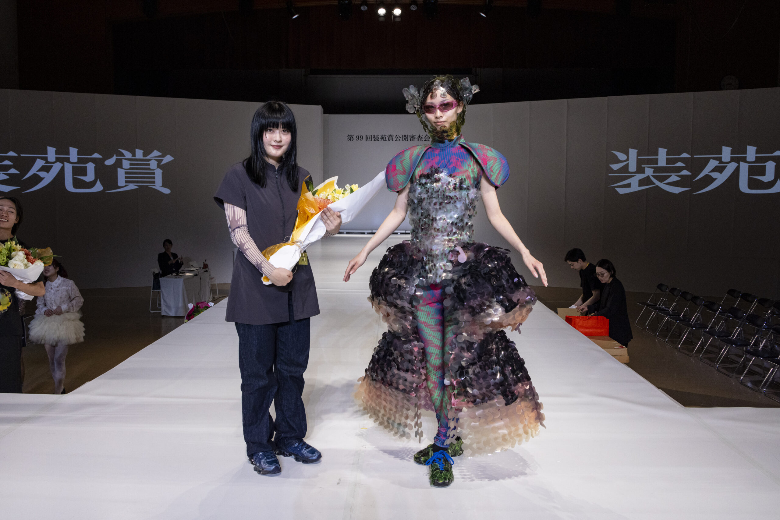 これは、学生たちの個性的な世界観が多くのデザイナーに評価され続けていることの証明です。昨年の岩野さんの装苑賞(グランプリ)受賞に続く2年連続での上位入賞は、当校の教育水準の高さを改めて示す結果となりました。