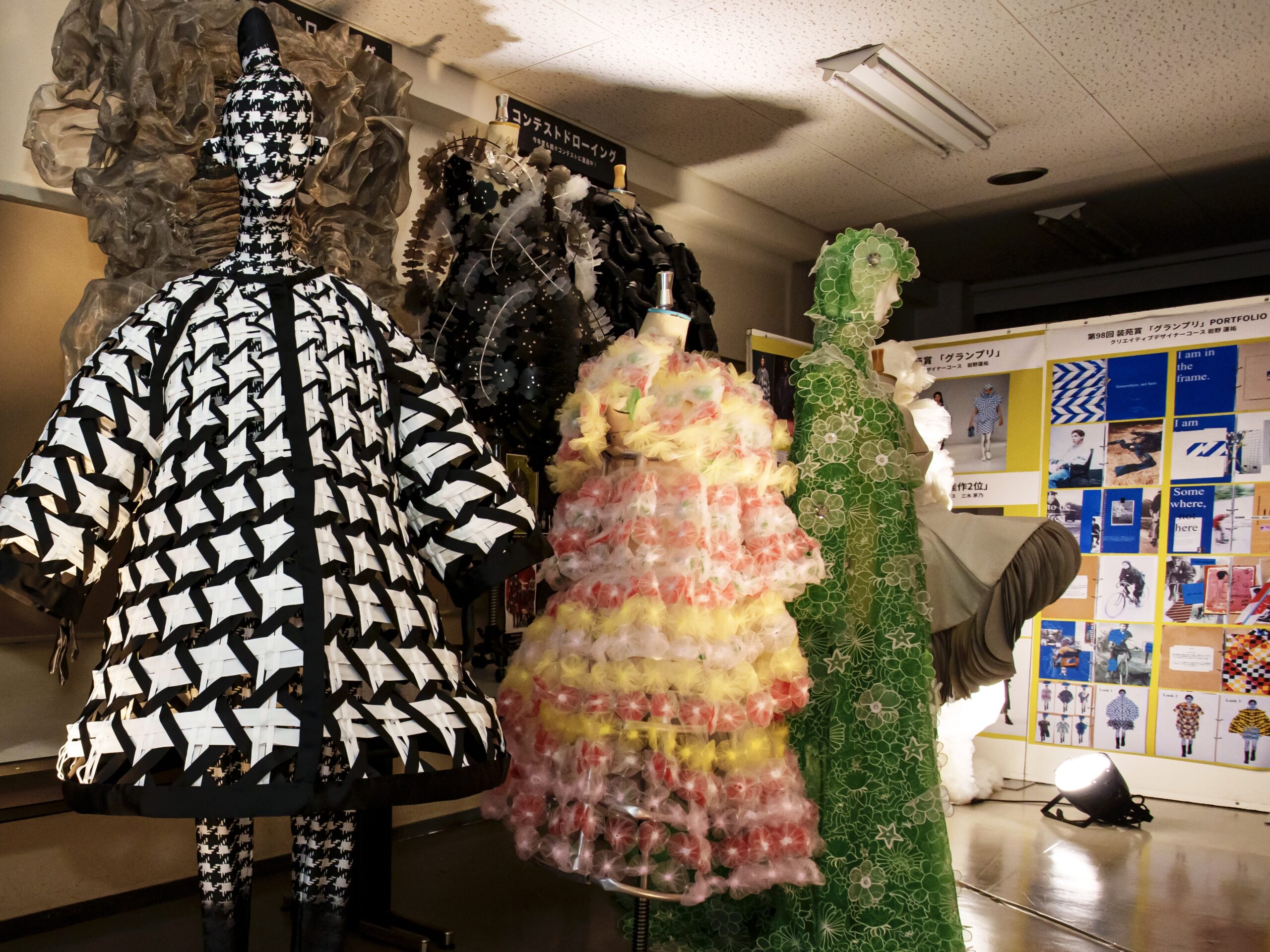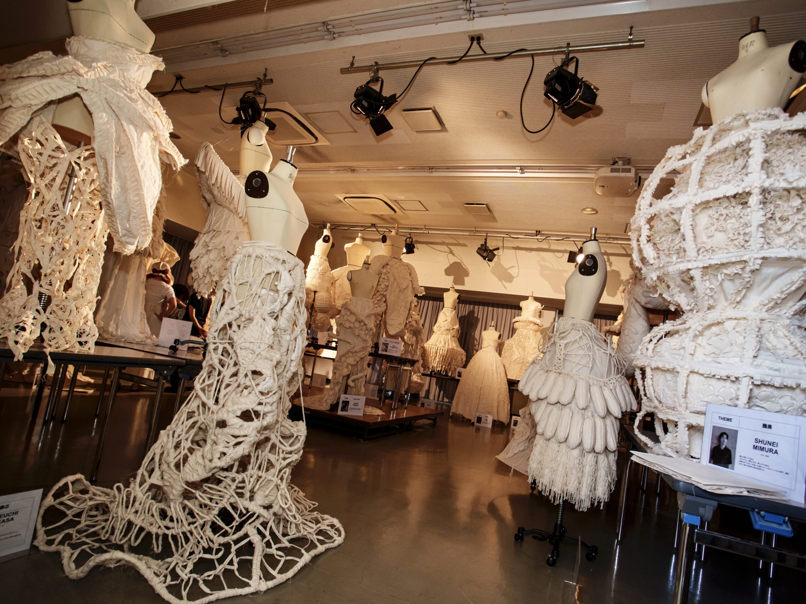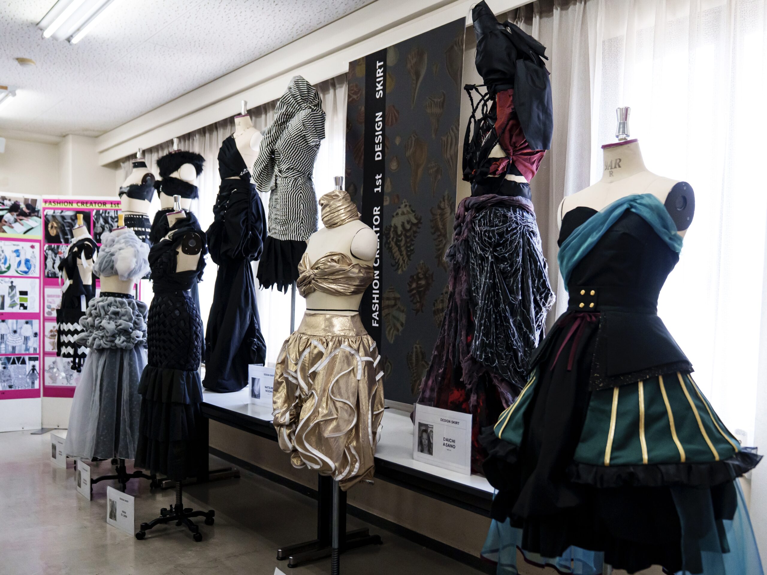 パタンナーコース、オートクチュール&舞台衣装コースは、日頃、身につけたパターンメーキング、オートクチュール技術を存分に発揮し、METGALAやJUNYA WATANABEなど、世界に名立たるブランドのコレクションを再現。