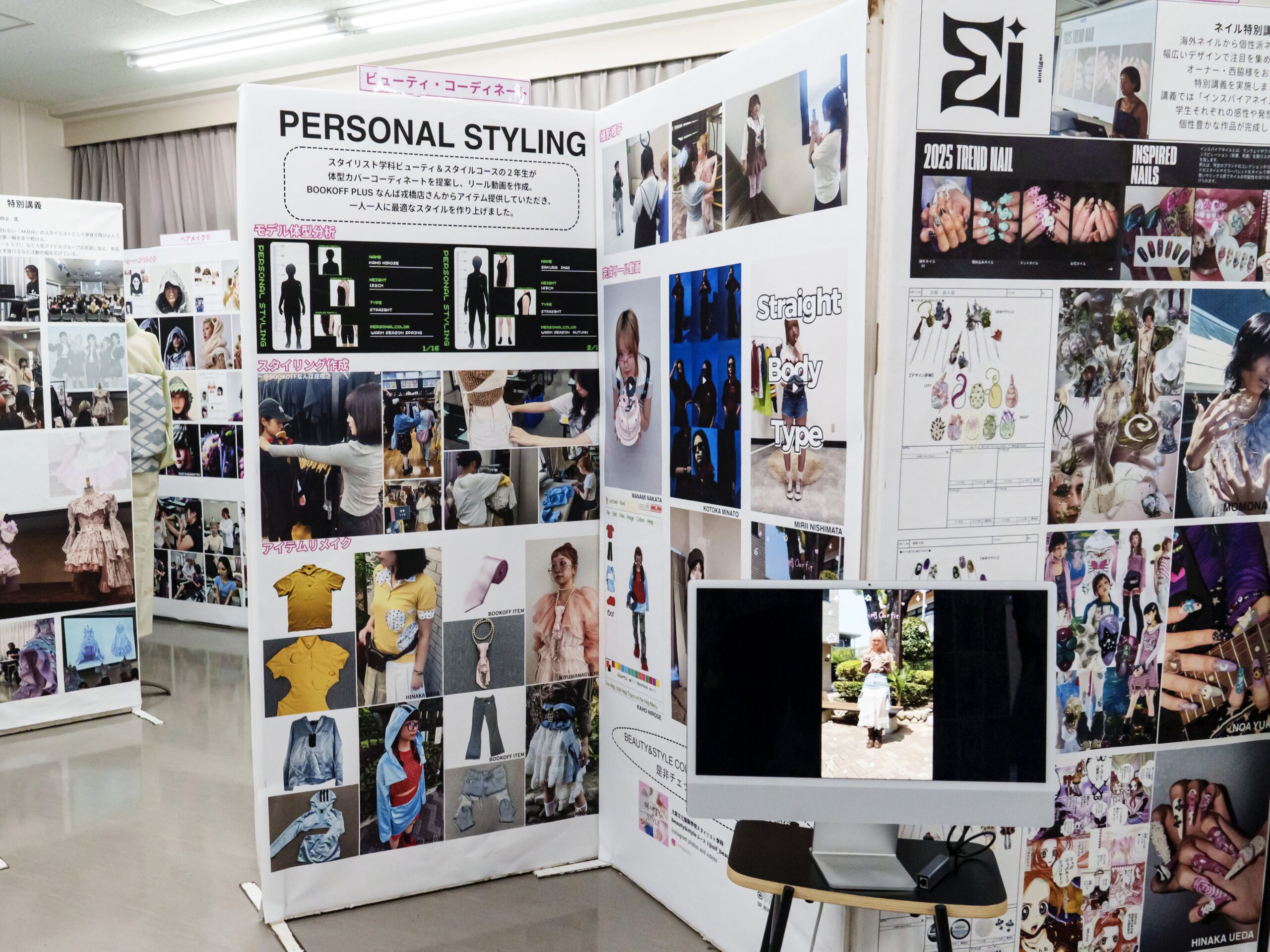 スタイリスト学科2年のスタイリングショーではコース別に作品を披露。プロフェッショナルコースでは個性を活かしたクリエイティブなスタイリング、ビューティ&スタイルコースではその人に合わせたパーソナルなスタイリングを提案しました。