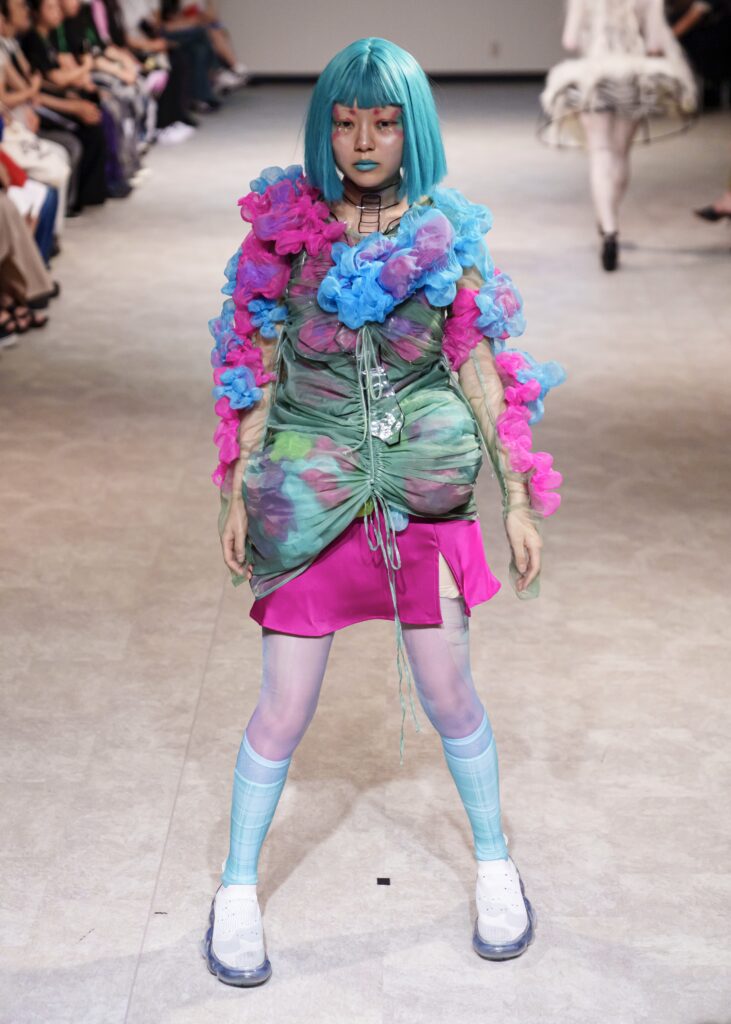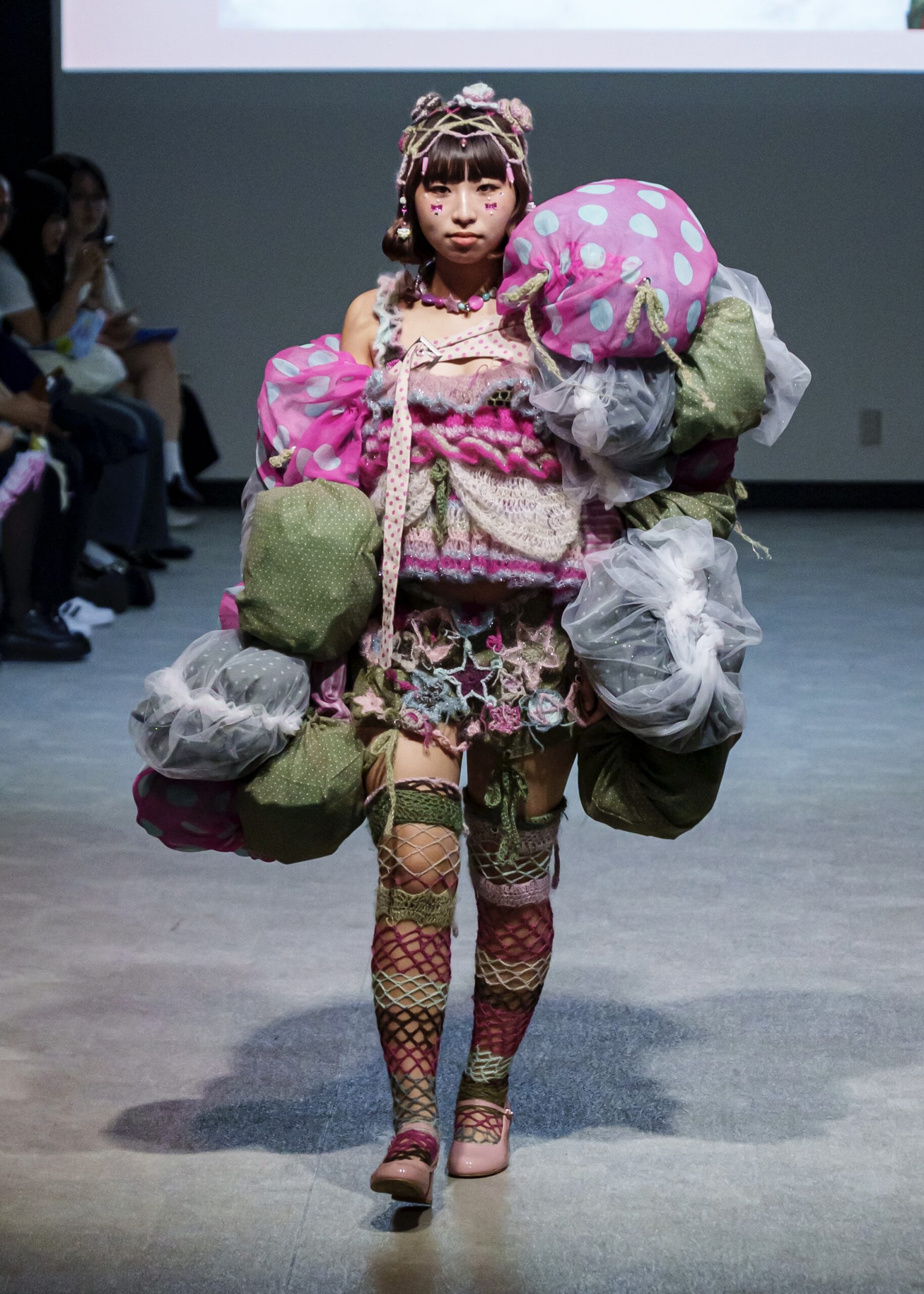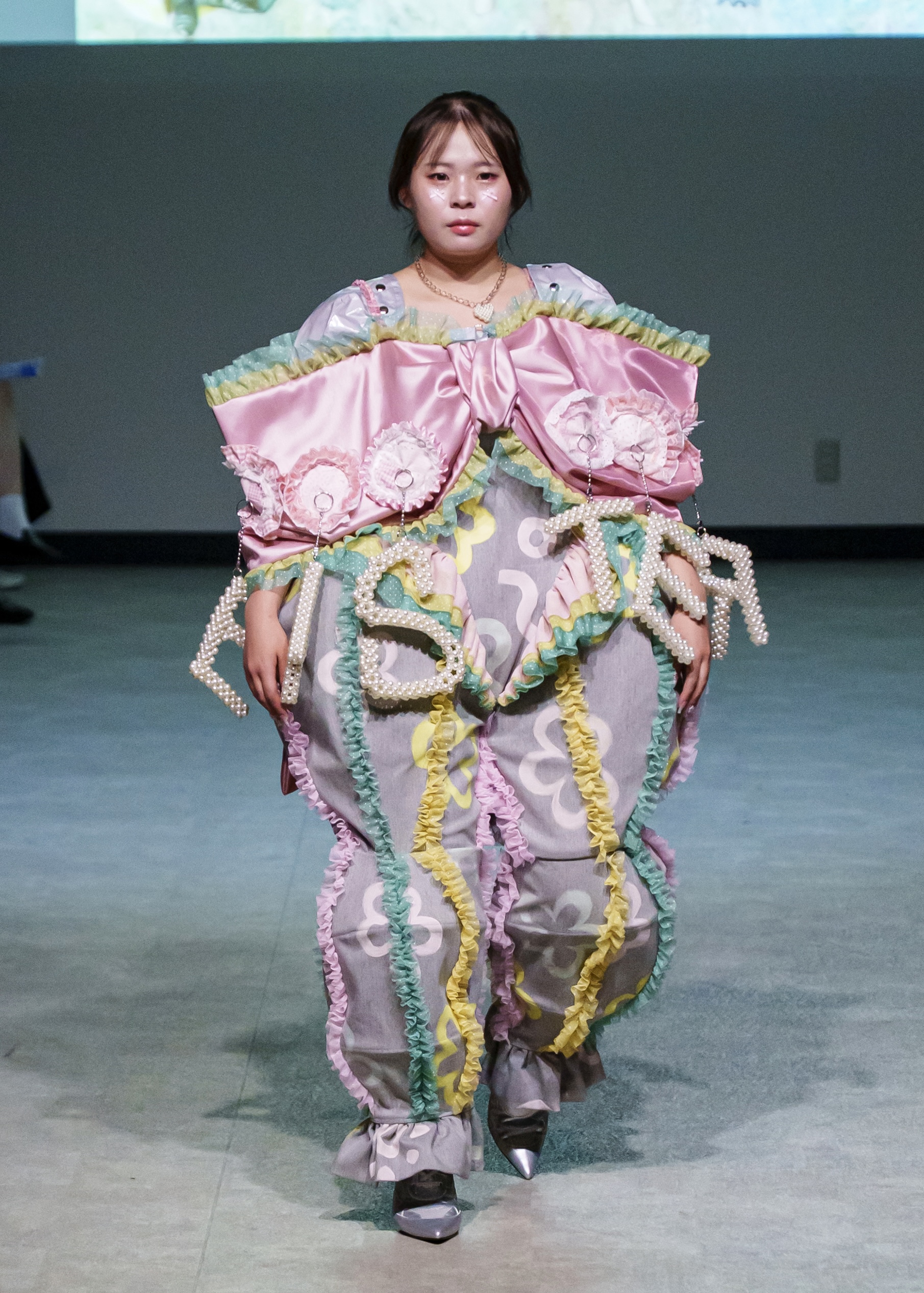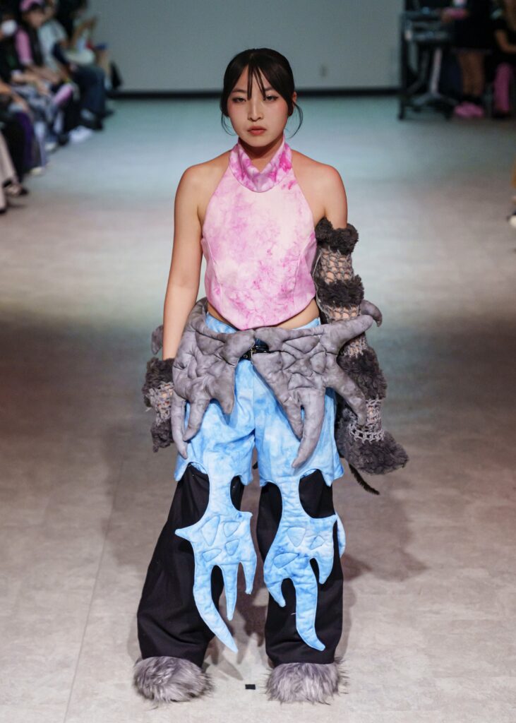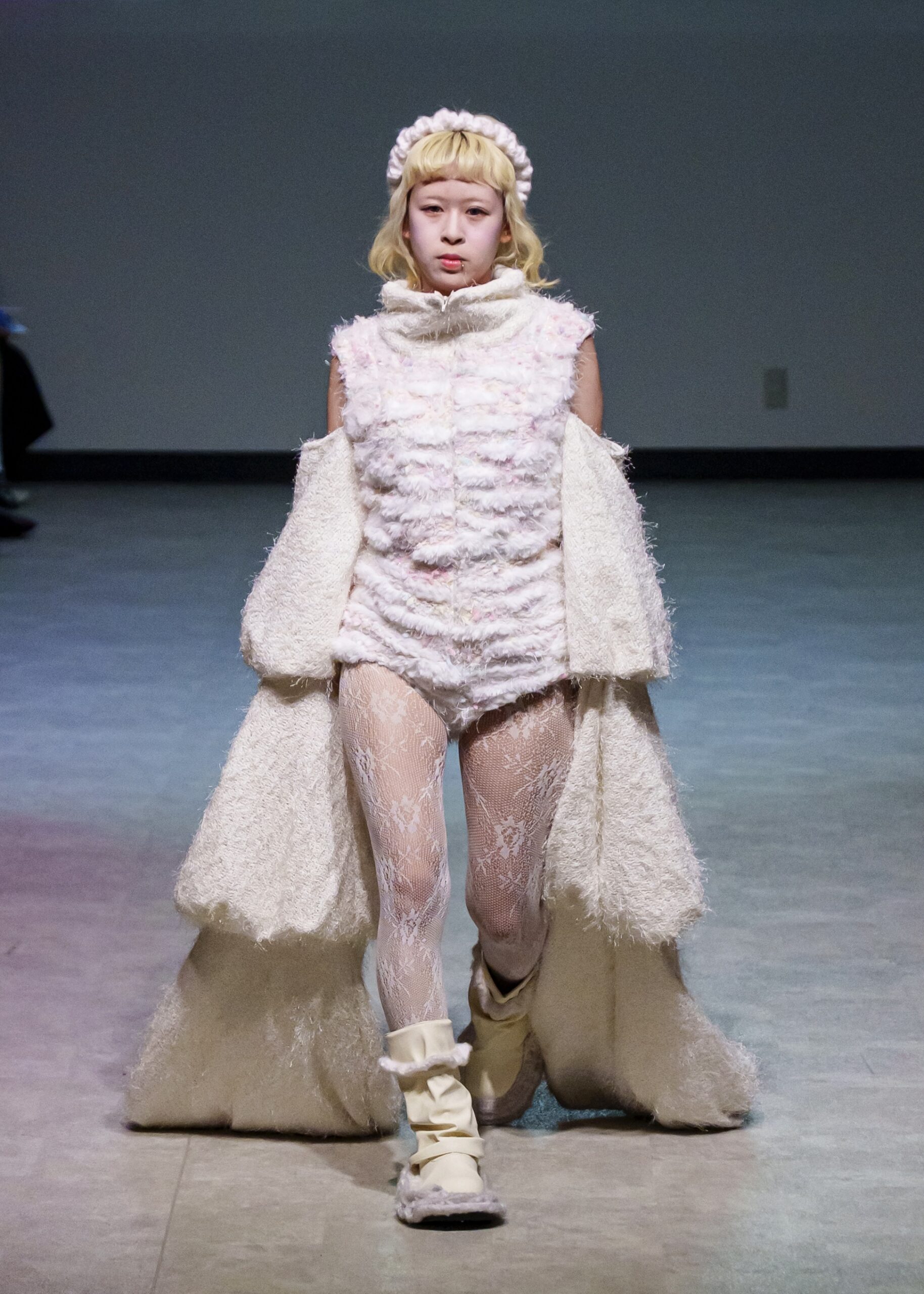 ファッション・クリエイター学科2年によるファッションショーでは、各コースの特色を生かした作品を披露。