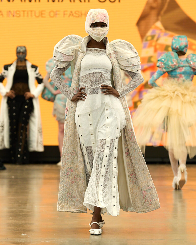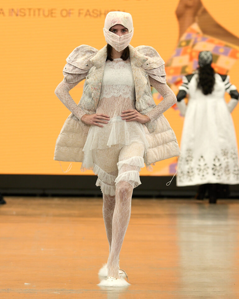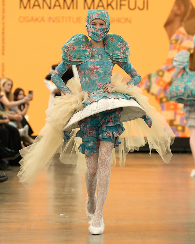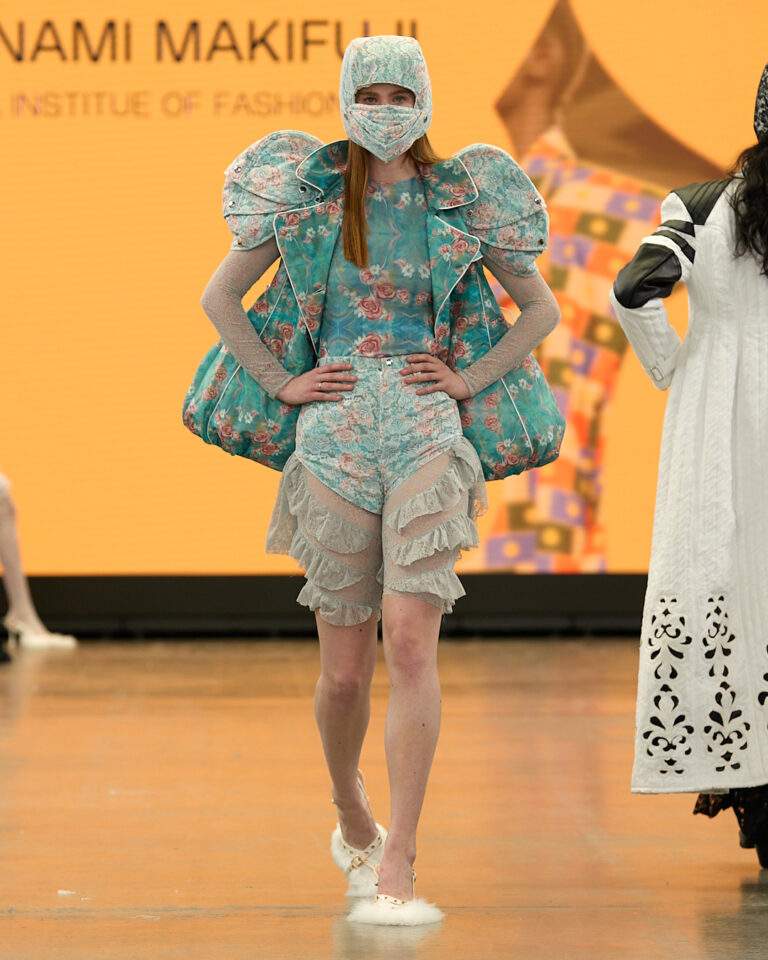 世界の有力ファッションから代表学生が集いコレクションを発表。巻藤さんの力強いルックに高い評価が集まりました。