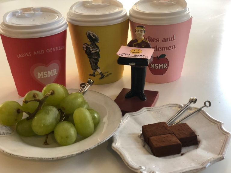 また、接客やディスプレイのリサーチも兼ねて、ADERERRORやChuu、OIOIなど、人気ブランドショップにも訪問。靴下ショップのMSMRでは、生チョコと紅茶でおもてなしを受けるなど、改めてサービスの在り方を学びました。