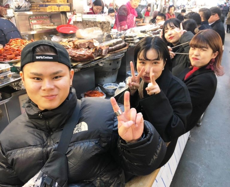 学生たちは、ソウルに到着後、間もなく、広蔵市場の100店舗ほどが集中する古着屋街を視察。その後、数キロも一直線に店舗が続く服飾雑貨の平和市場、東大門のナイトマーケットを立て続けに訪れるなど、初日から精力的にリサーチを行いました。