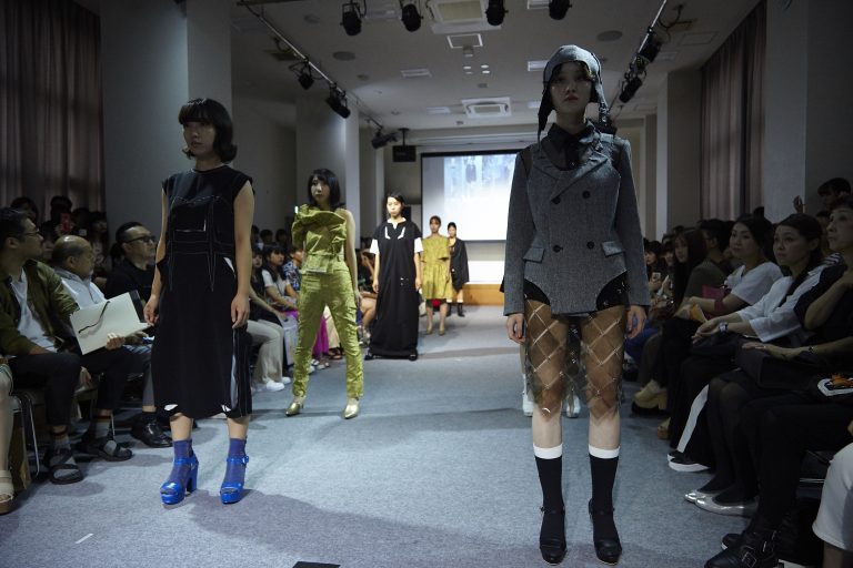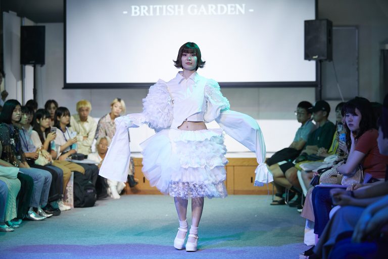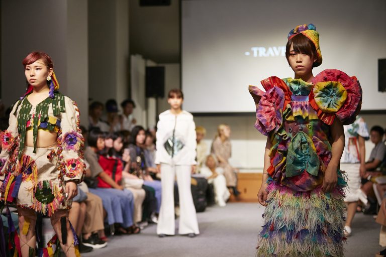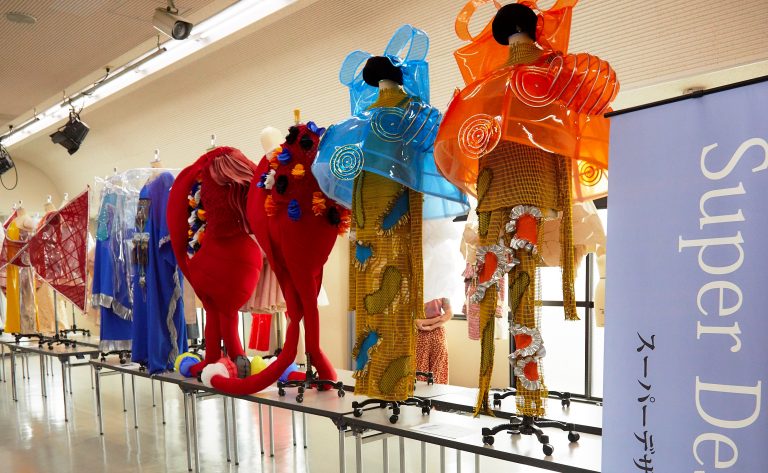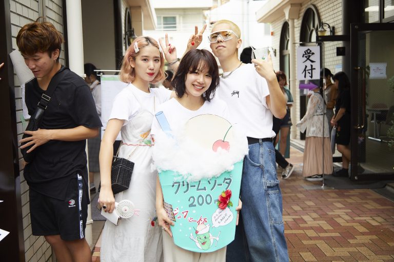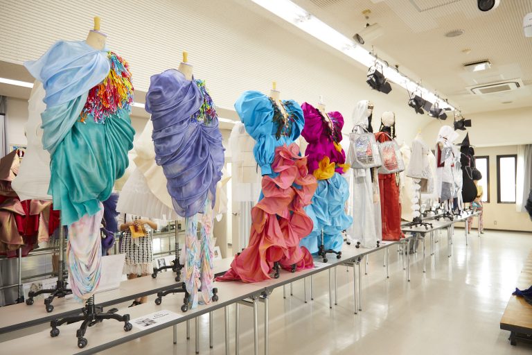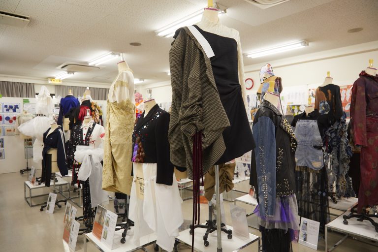 すみれホールではファッションショー。ファッション・クリエイター学科2年によるサマーショー、スタイリスト学科2年によるスタイリングショーが行われました。教室では、各学科の学生が、日頃の学びの成果発表として作品展示を行うなど、キャンパス全体がギャラリーさながらに彩られました。