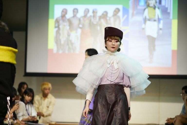 スタイリスト学科2年のスタイリングショーでは、「国×感性8分類」をテーマに、好きな国とイメージを掛け合わせてスタイリング。ヘア&メイクやアクセのセレクトはもちろん、モデルの選定まで、トータルでのスタイリング提案を行いました。