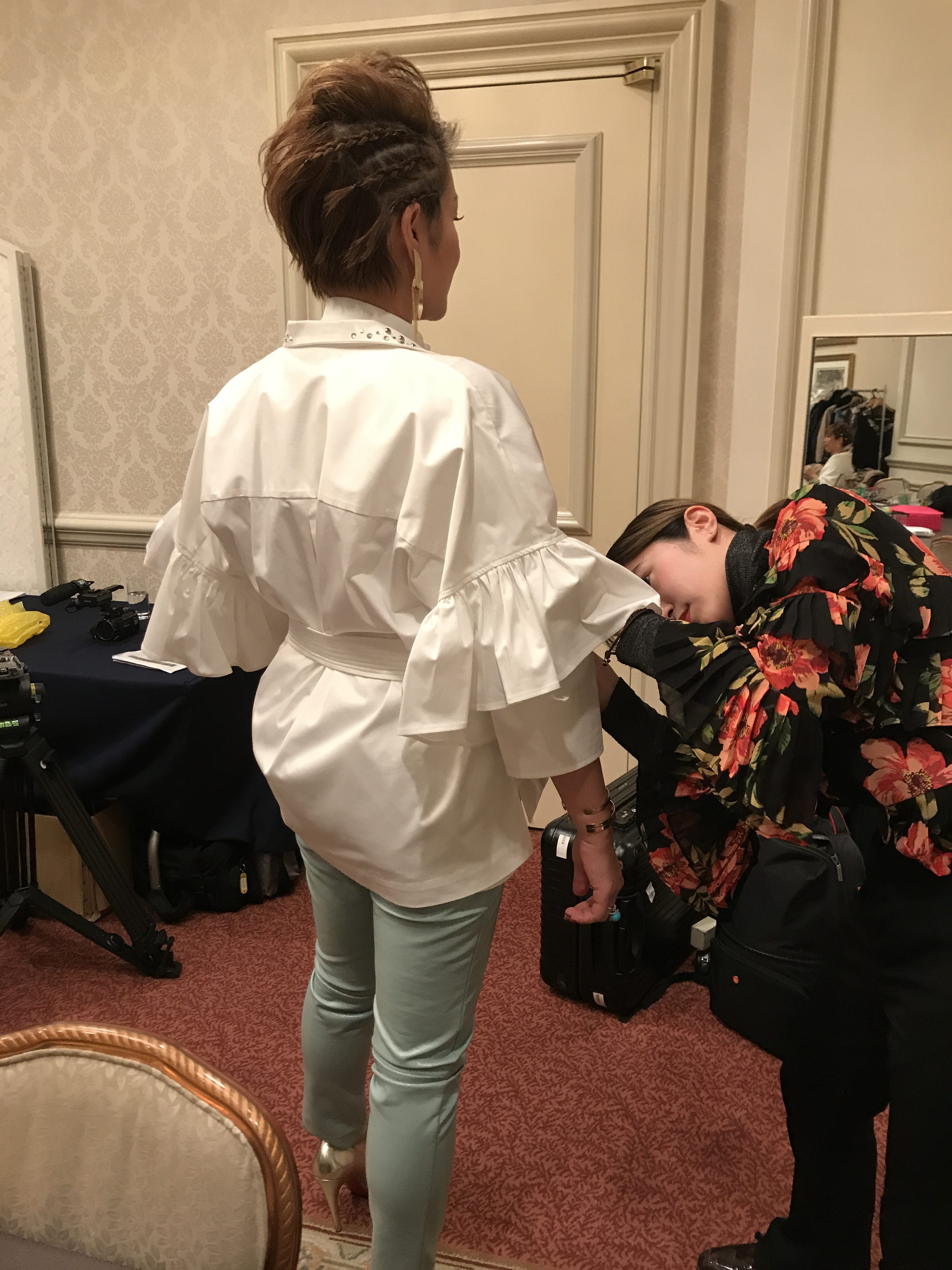 スタイリングは、IZAが取り扱うブランド LIVIANA CONTIやCOTEのアイテムを使用したミックスコーディネート。モデルさんの要望なども加味しながらというハードルの高いものでした。