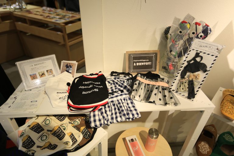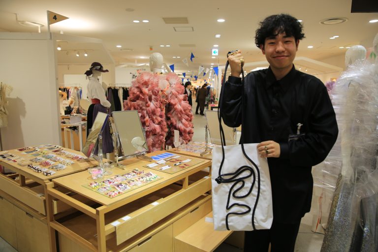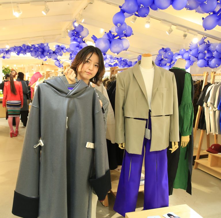 スーパーデザイナー学科2年生による学生ブランドは、素材やディテールにこだわった1点ものの商品をラインナップ。数万円の商品を次々と購入いただくなど好評を得ました。