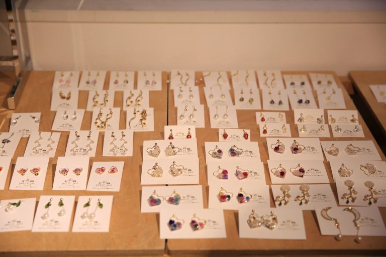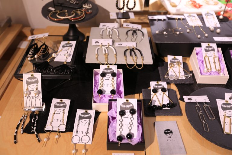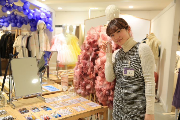 クリエイティブデザイナーコース2年生は、アート感を重視した作品をインスタレーション。その世界観を落とし込んだアクセサリーを販売しました。