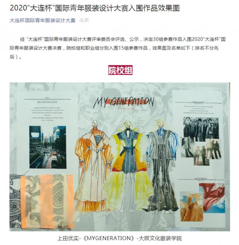 また、9月に中国・大連で開催される「大連杯2020」では、スーパーデザイナー学科4年 上田優実さんがファイナリストに。現地での最終審査会でコレクションが発表されます。