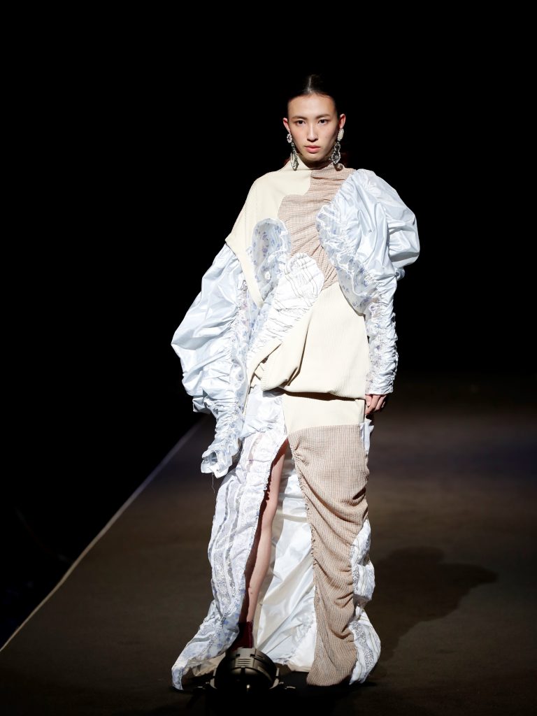 山名さんは、“田舎のおばあちゃん家”で感じる、和と洋が混ざった日本独特のノスタルジーを、軽やかな空気感のある作品で表現しました。 当校は、学科によって違う視点でのファッションの捉え方を学びますが、それぞれを象徴する作品が高く評価される結果となりました。