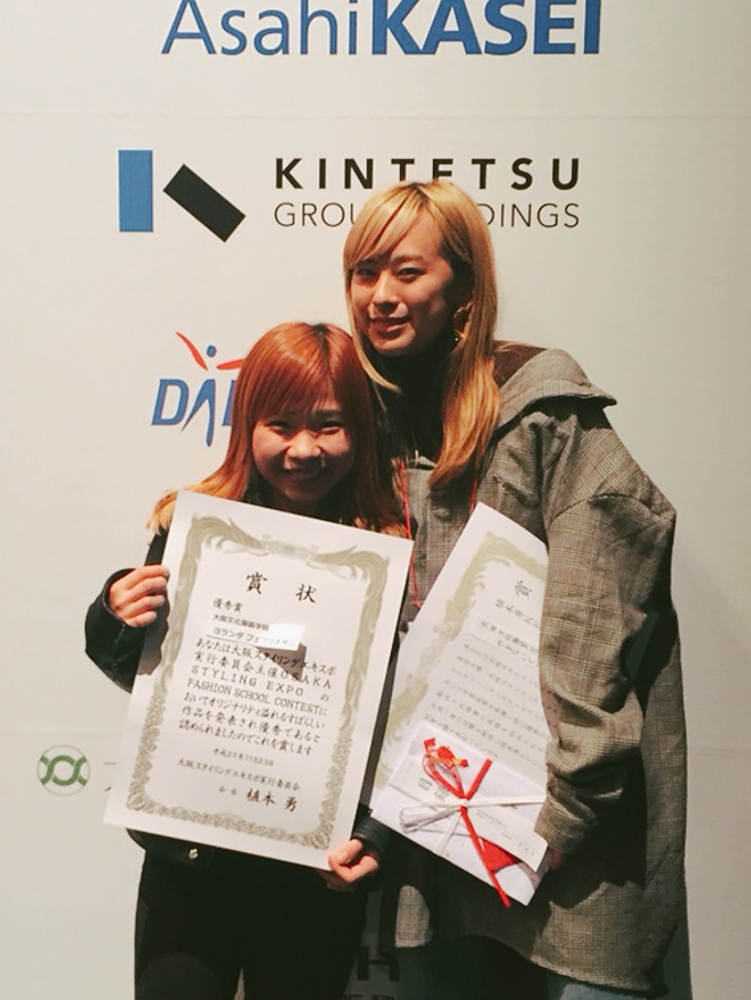11月23日、堂島リバーフォーラムをメイン会場に、大阪スタイリングエキスポが開催されました。その中で行われた、関西でファッションを学ぶ学生を対象としたデザインコンテスト「FASHION SCHOOL CONTEST」で、大阪文化生2名が受賞。ファッション・クリエイター学科クリエイティブデザイナーコース3年 ヨランダ・フェブリナ・タンさんが、準グランプリにあたる優秀賞、それに次ぐ、植本勇KFCC特別賞に、スーパーデザイナー学科4年 山名生穂さんが選出されました。