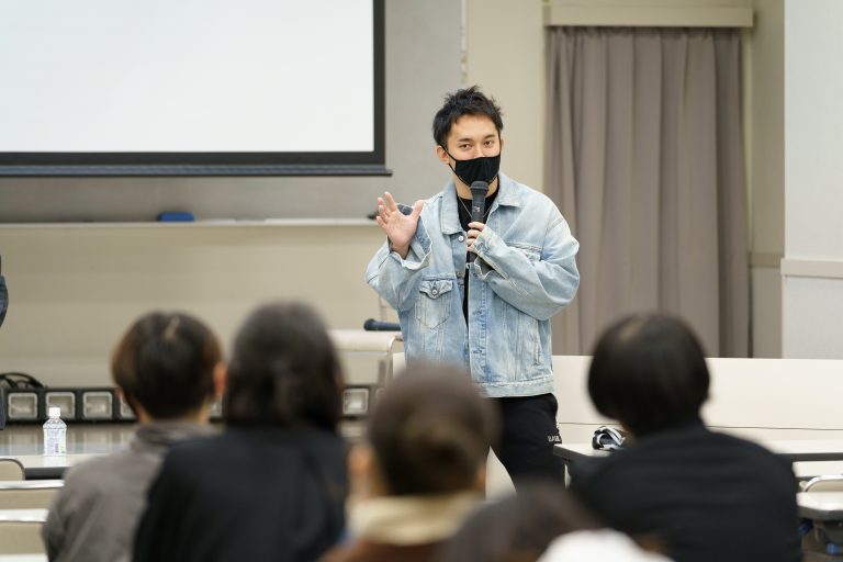 講義終了後は、学生からの質問や相談が絶えない中、学生との年齢が近いこともあり、和気あいあいとした雰囲気で対応いただきました。