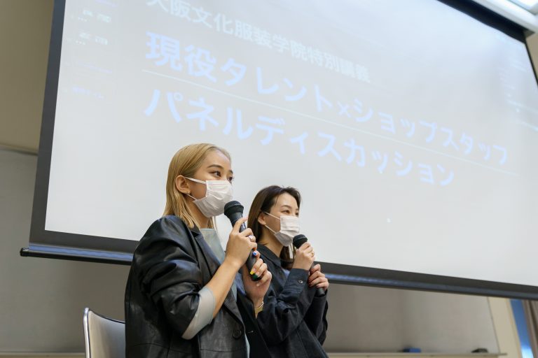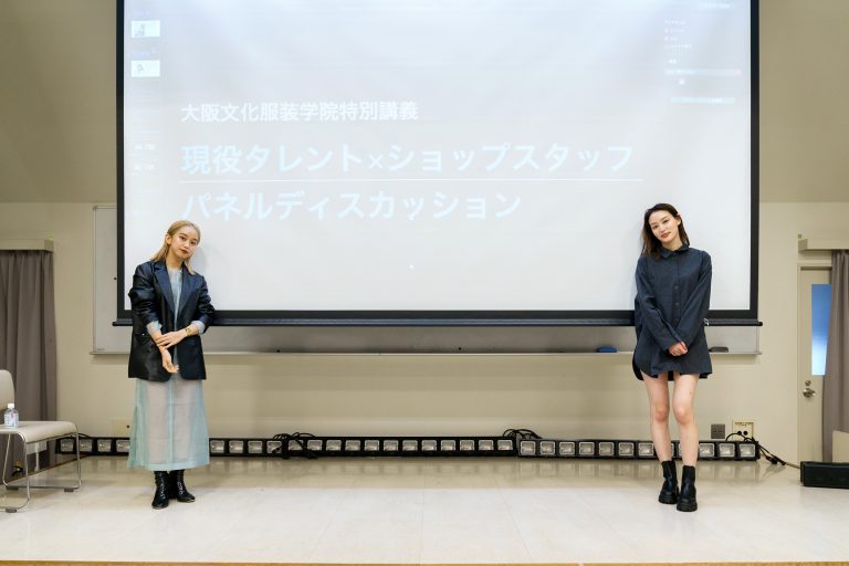 最終回に登壇した、川本さん、花山さんは、大手アパレル企業 バロックジャパンリミテッドの現役ビジュアルスタッフでありながら、タレントとしても活躍するという、これまでにないスタイルで活動しています。ファッション業界での活躍を目指す学生たちにとって、まさに「刺さる」存在なのです。