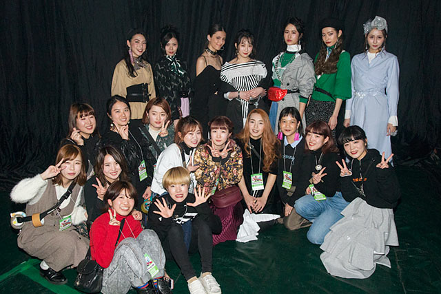 終了後は、モデルさんらと記念撮影。最後にステージをやり遂げた学生たちに、将来へのはなむけのことが贈られました。