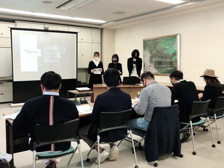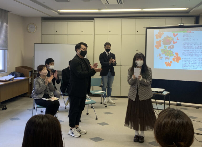 12月には表彰式が行われ、小林未優さん、柿原唯さん、國土美幸さん 3名による図案が商品化されることも発表。自らの企画が実際に商品として販売される、学生にとって得難い貴重な経験となりました。