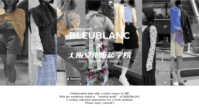 株式会社ジャヴァコーポレーションが運営するブランド「lautreamont BLEUBLANC(ブルーブラン)」とのコラボレーションで、スタイリスト学科2年生が、春夏商材を使用し、スタイリングを組み、PR写真や動画を撮影しました。これは、ブルーブランから、学生による個性溢れるスタイリングを発信することで、お客様に新しく自由なスタイルを提案したいとの依頼をいただき、実現した企画です。