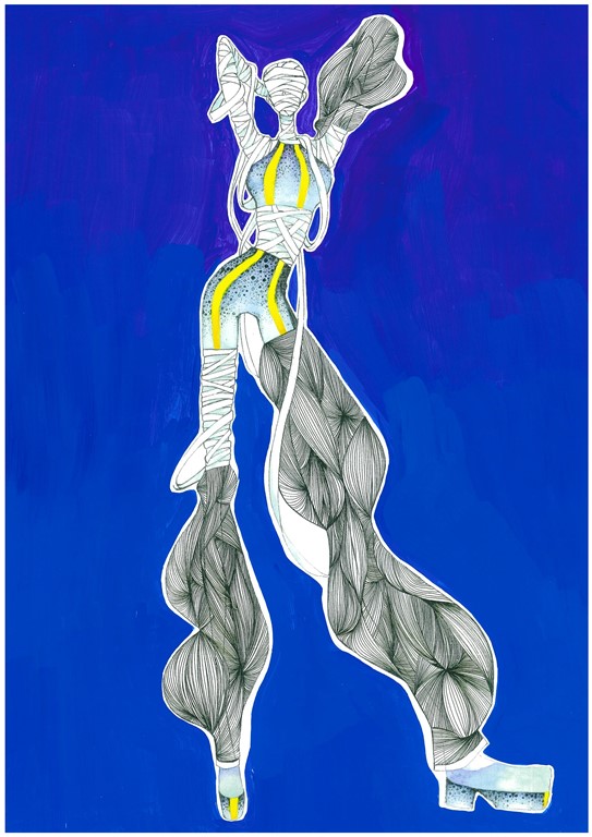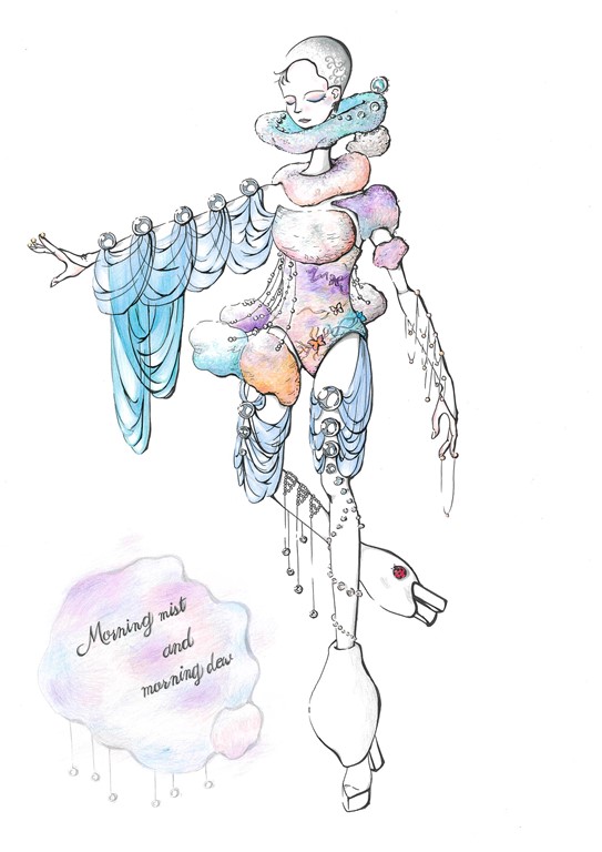 ≪審査員長・田山氏講評≫ 非常にシンプルな作品です。シンプルさによって、ご自身が表現したい服を浮き出させています。ミニマリズムに、描いたり物を作ったり表現しながら訴えるというのは難しいのですが、うまく表現できていました。