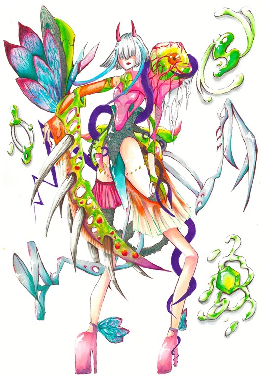 ≪審査員長・田山氏講評≫ 昨年・一昨年のこのコンテストや、私が審査員を務める他のコンテストにもご応募いただいている熱心な方で、いつも素晴らしい絵を描かれています。絵、デザイナー、グラフィックなど、さまざまなジャンルで活躍できる人だと思います。