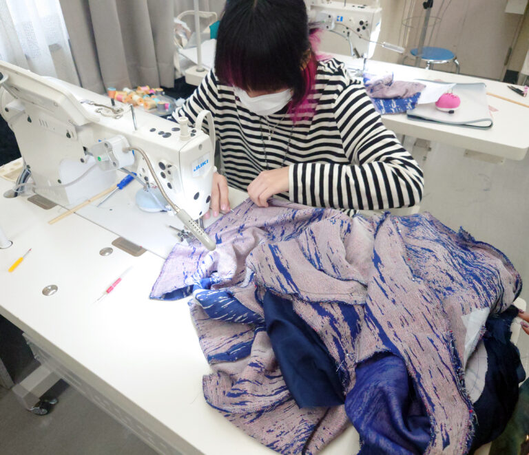 デザイン決定を受け、ファッション・クリエイター学科オートクチュール&舞台衣装コース2年が縫製を担当。