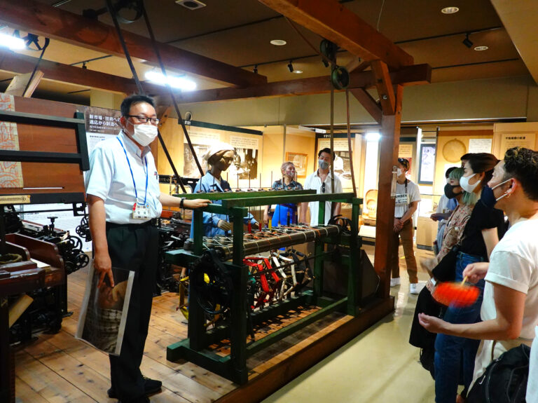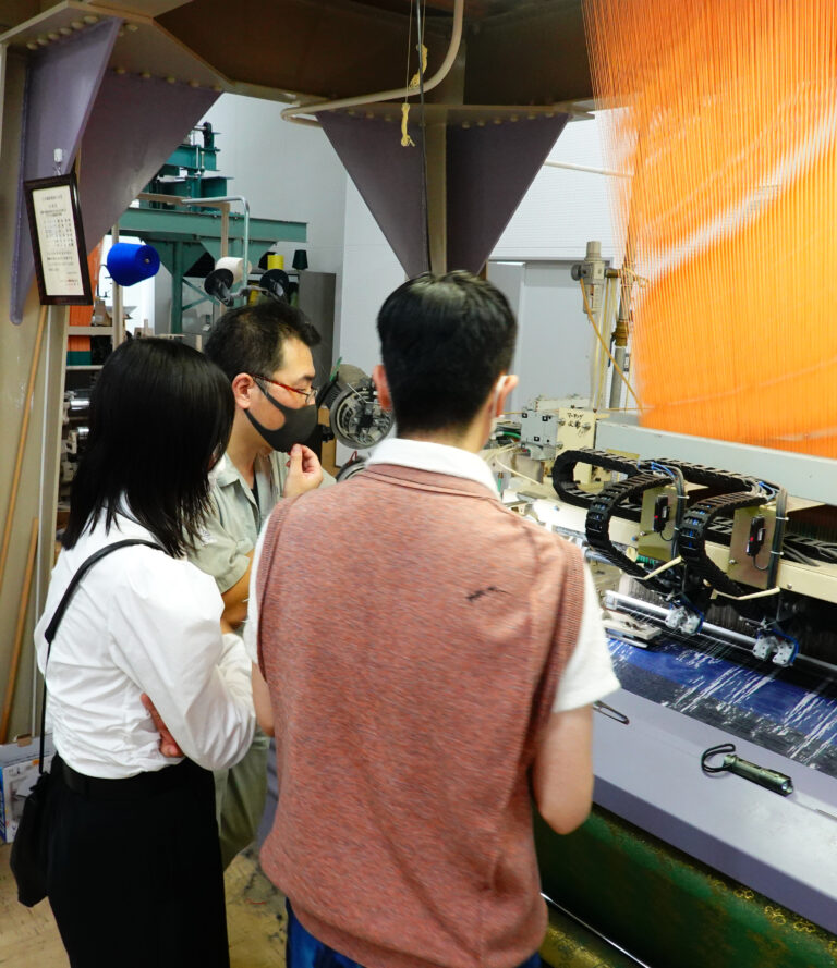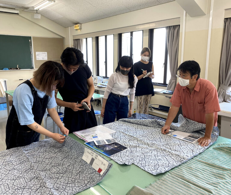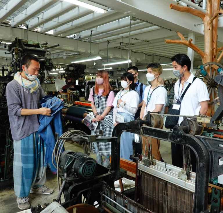 企画・デザインを行ったのは、スーパーデザイナー学科3年。まずは、西脇市の生産工場や歴史資料館、繊維技術支援センターを訪問。「播州織」の歴史や西脇市の特徴についてリサーチ。