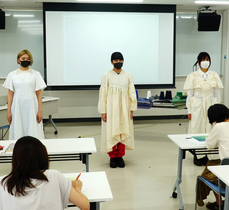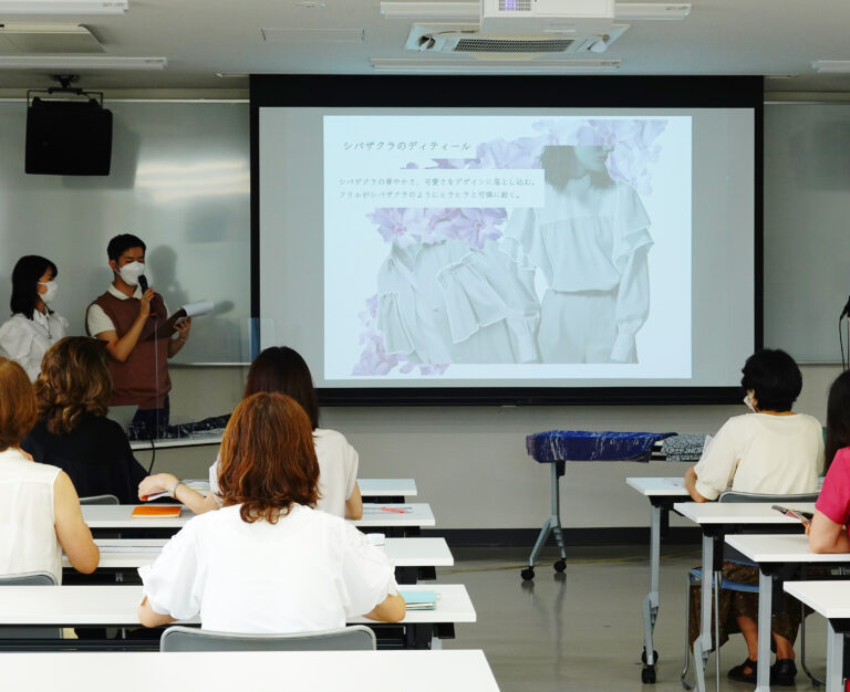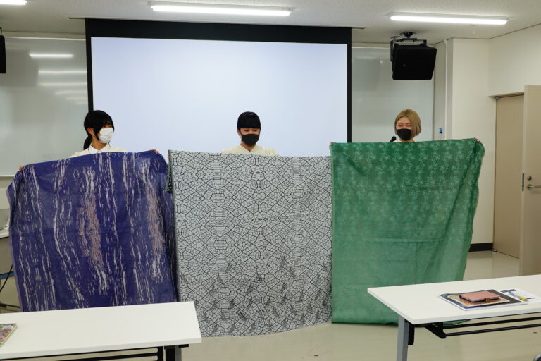 プレゼンでは、「兵庫県繊維技術支援センター」の協力のもと、学生の想いとコンセプトが見事に再現されたオリジナルテキスタイルも披露されました。