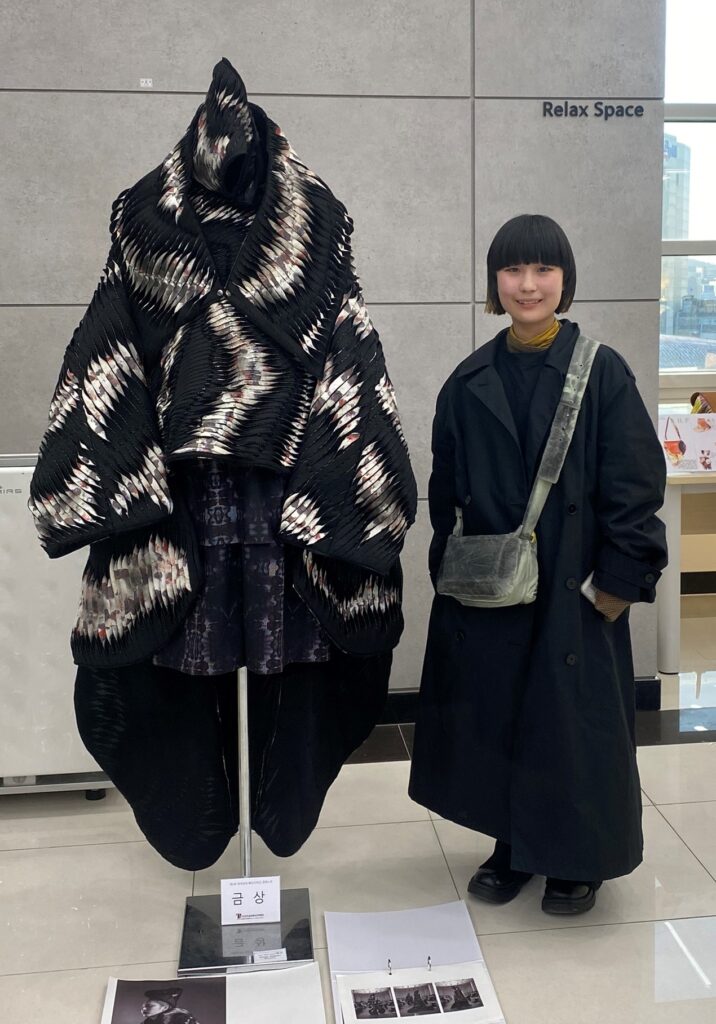 1月に韓国・ソウルで開催された、第3回「Korea Textile·Fashion Design Contest」で、ファッション・クリエイター学科クリエイティブデザイナーコース3年 守本紗菜さんが準グランプリにあたる金賞を受賞!
