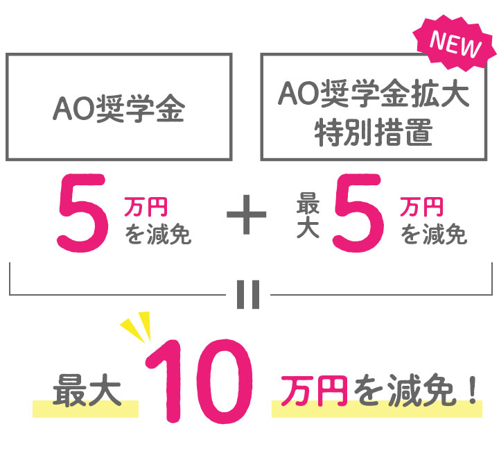 ①AO合格者全員!初年度前期の授業料から5万円を減免。