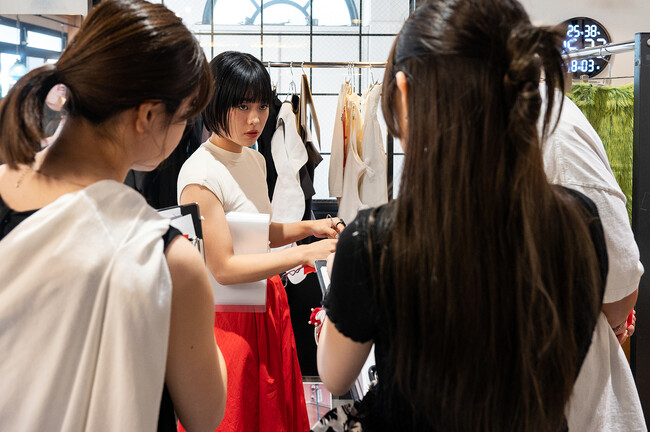 極細ポリエステル糸を作り出す独自の加工技術から開発された、薄く透け感のあるオーガンジー素材。ドレス素材においてはバリエーション・カラー数・ラインアップは業界随一で、ブライダル市場での使用も有数。グローバルにおいてもファッションをリードするインターナショナルブランドと素材の取引をしている