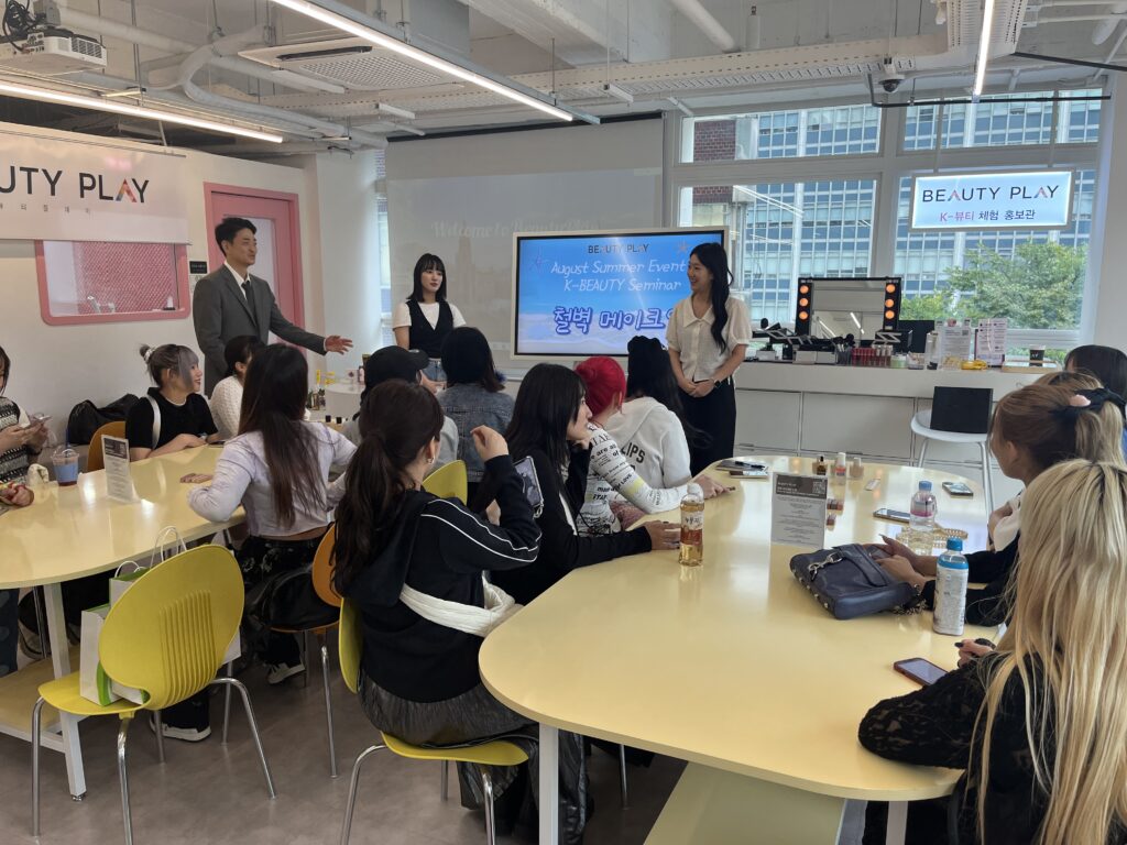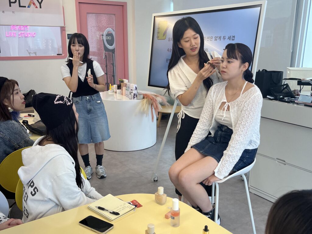 午後からは明洞へ移動し、K-beautyのメイク講習を受講。