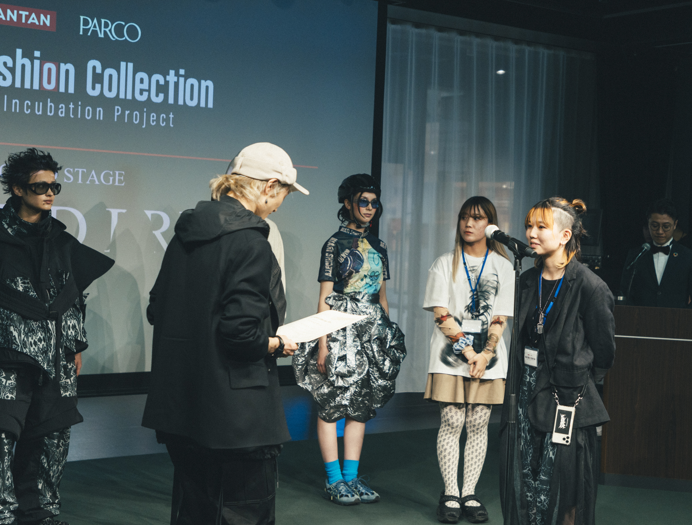 受賞コメント:作っていて自分でも楽しいコレクションだったので、これからもこの気持ちを大切に色々な人にこのハッピーな気持ちを届けられるように洋服を作っていきたい。ありがとうございました。