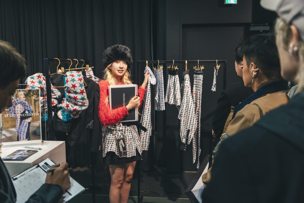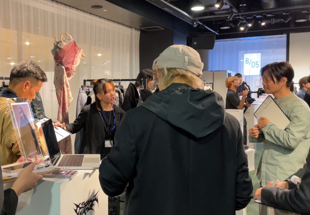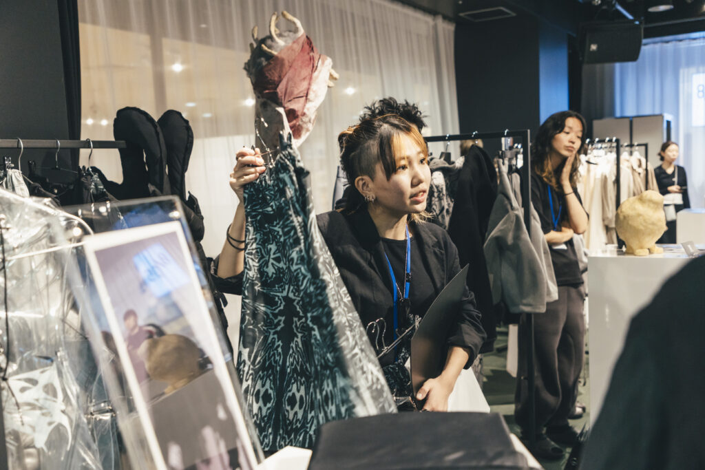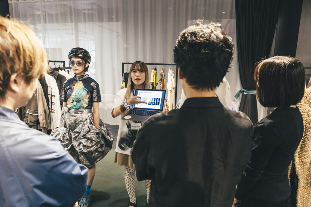 渋谷ヒカリエにて行われた国内最終審査会では、ブランドデザイナーが展示会形式で審査員へプレゼンテーション。「作品1点」を発表する多くの国内コンテストのスタイルとは異なり、国際的な活躍を想定し「ブランド単位」で挑む当コンテストにおいては、ビジネス面を含めたブランドとしての可能性が評価されます。在学中よりマイ・ブランドをもって活動する「スーパーデザイナー学科」生の実力が遺憾なく発揮されています。