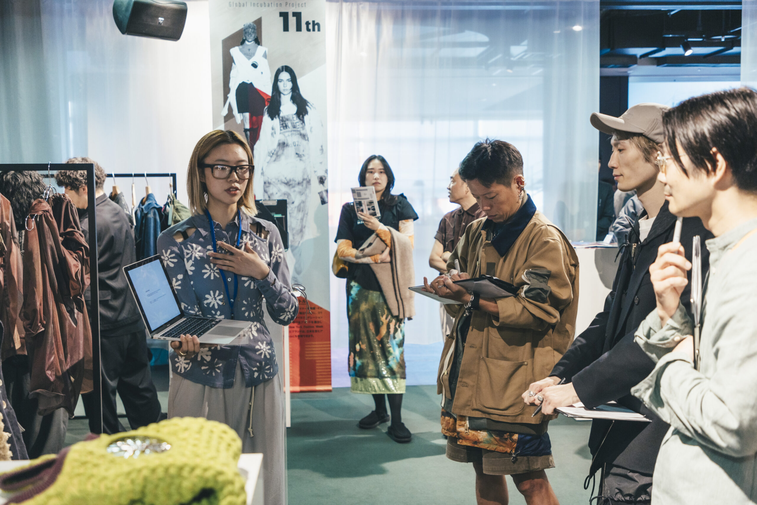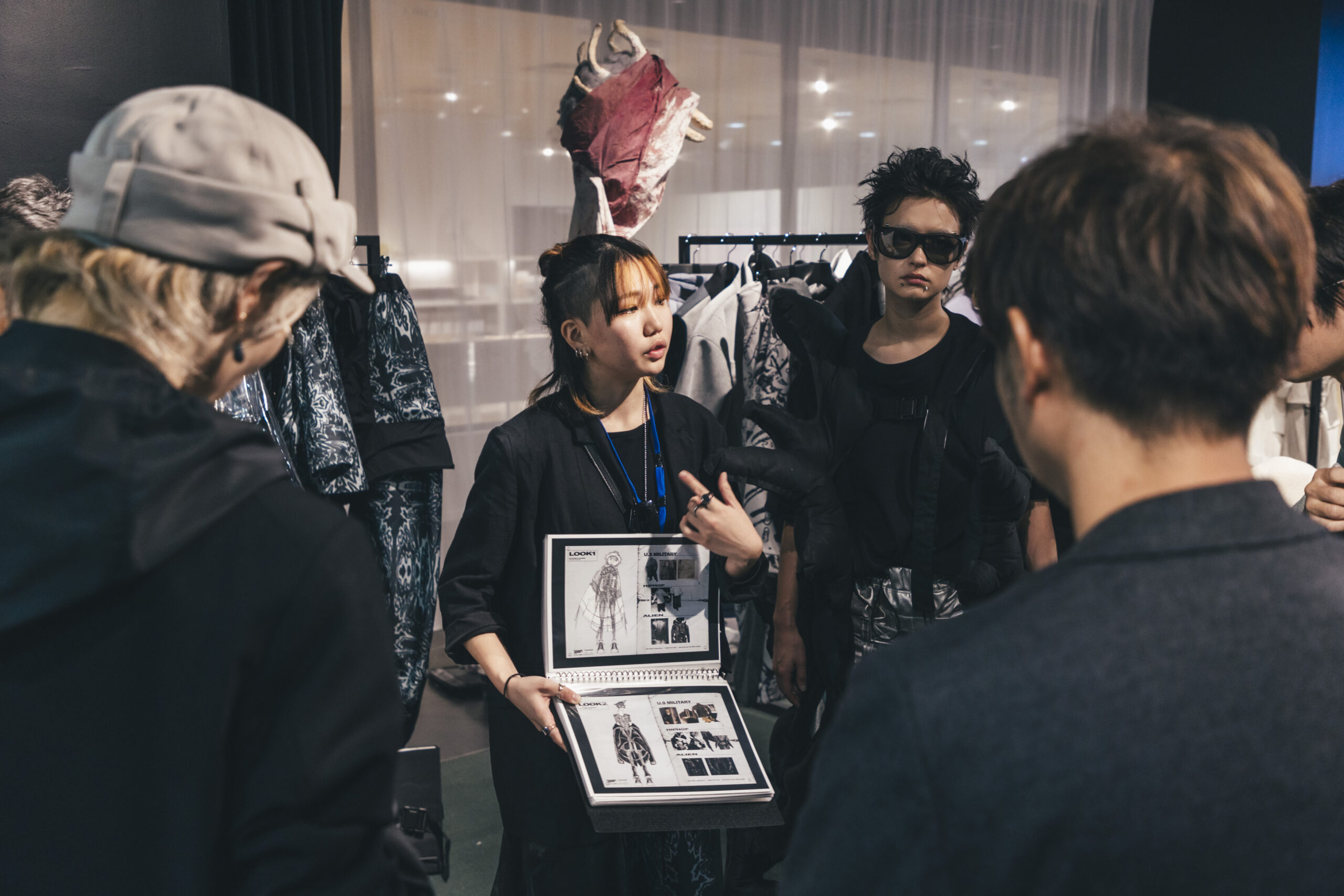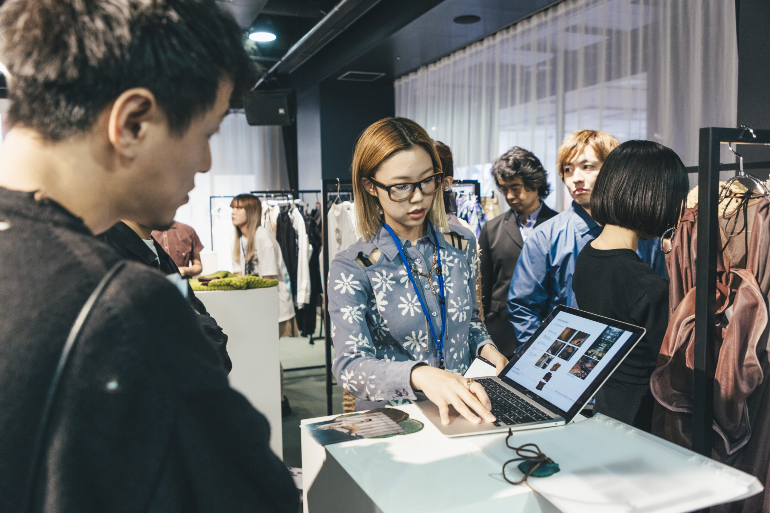 渋谷ヒカリエにて行われた国内最終審査会では、ブランドデザイナーが展示会形式で審査員へプレゼンテーション。「作品1点」を発表する多くの国内コンテストのスタイルとは異なり、国際的な活躍を想定し「ブランド単位」で挑む当コンテストにおいては、ビジネス面を含めたブランドとしての可能性が評価されます。在学中よりマイ・ブランドをもって活動する「スーパーデザイナー学科」生の実力が遺憾なく発揮されています。