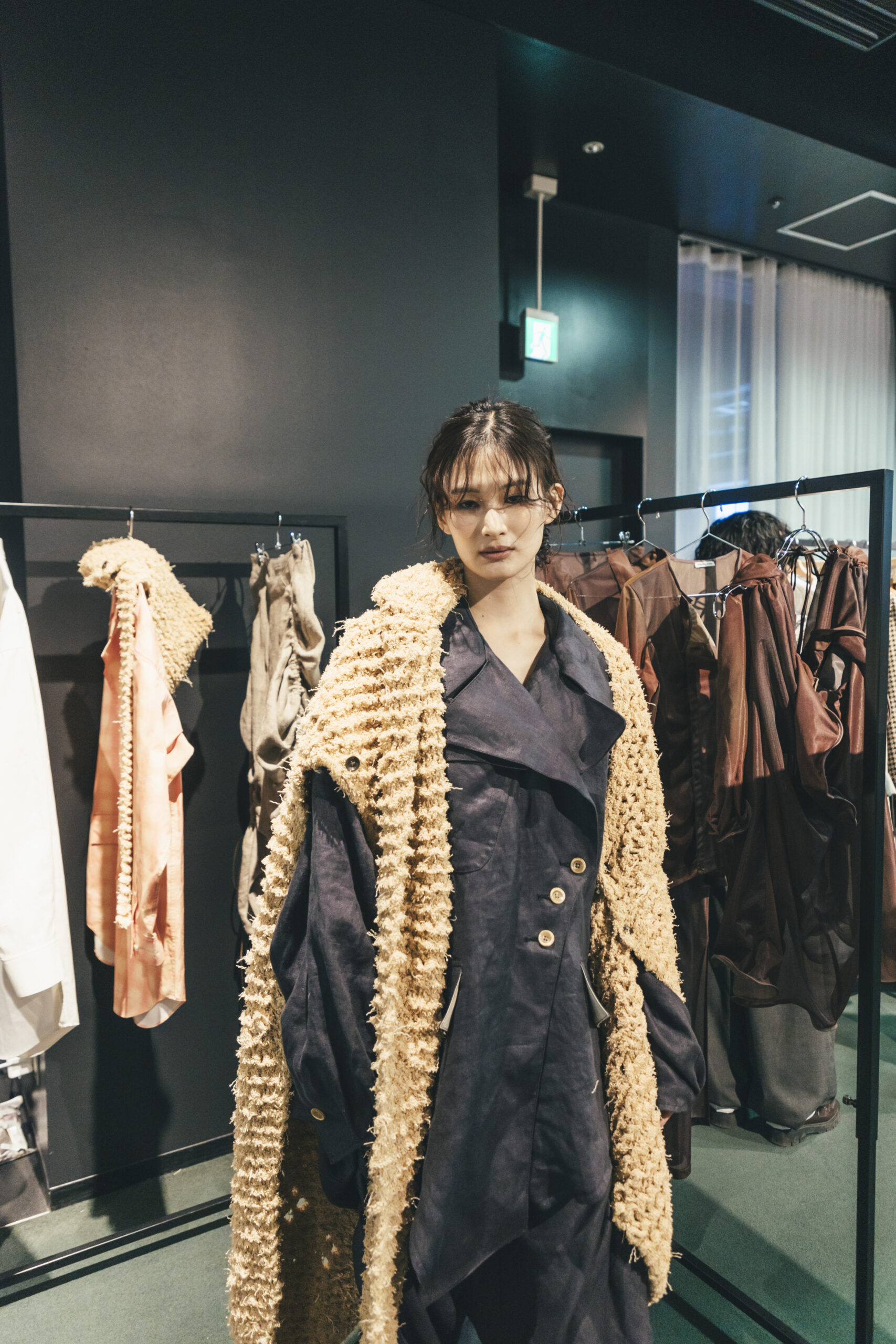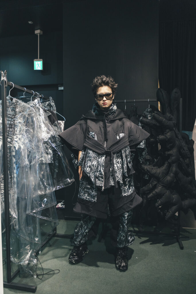 コンセプト:現代と自然の融合。自然から偶然生まれたフォルムや素材を研究し、ファンタジーな世界観を通して衣服に落とし込む。今を生きる多趣味な人たちの好奇心をくすぐるコレクションを目指す。