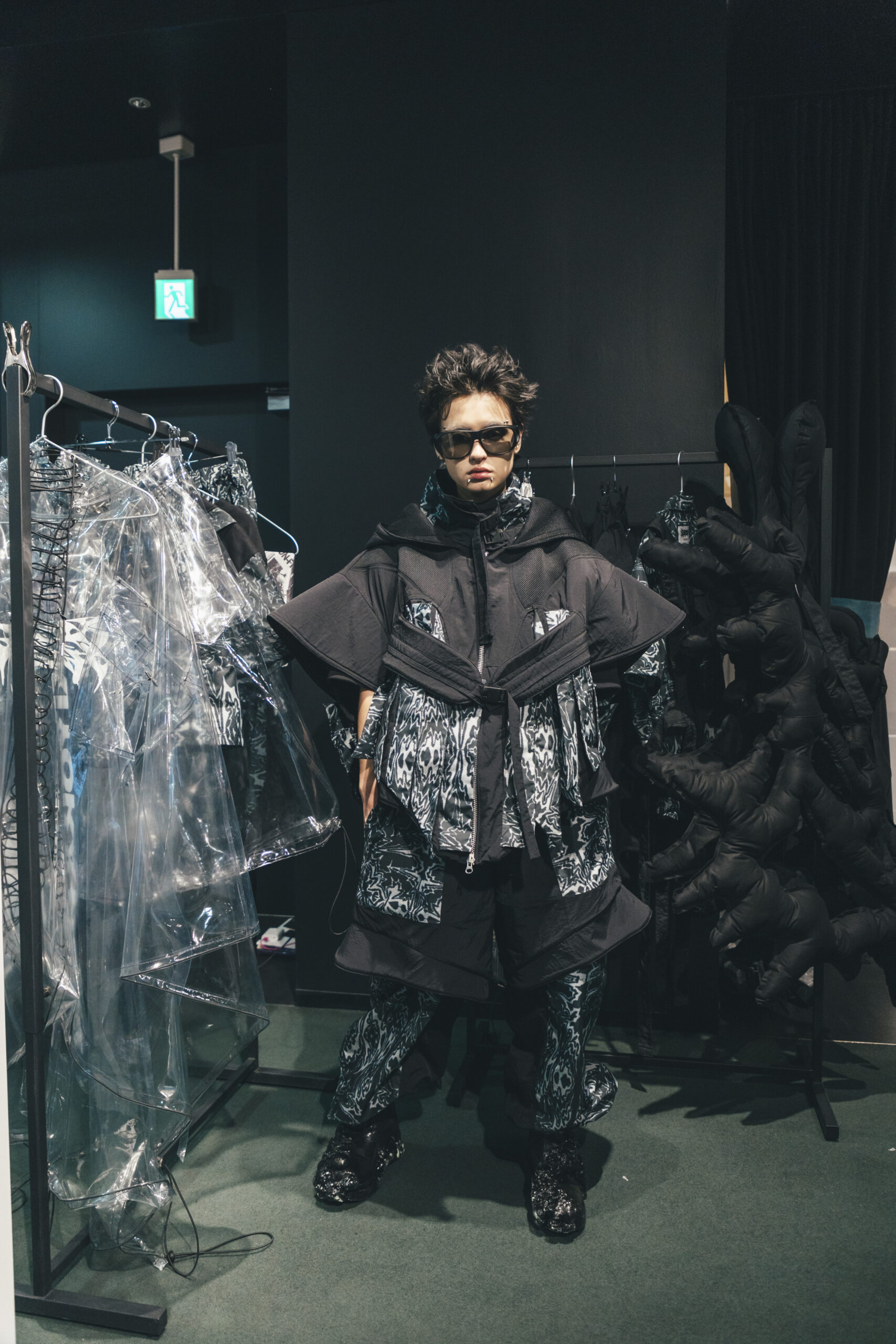 モードの中に機能性を入れたアクティブウェアを中心に、装備として衣服を提案。戦う人に勇気を与える戦闘服。