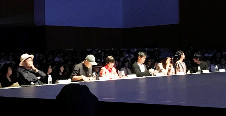 審査員はコシノジュンコ氏やツモリチサト氏、ミハラヤスヒロ氏など国内の著名デザイナーが立ち並ぶ