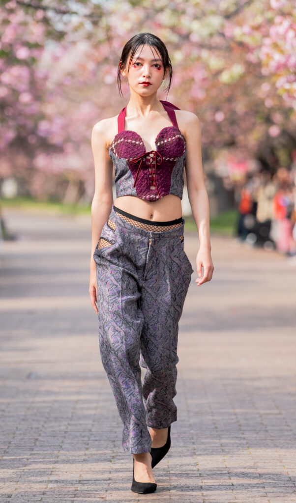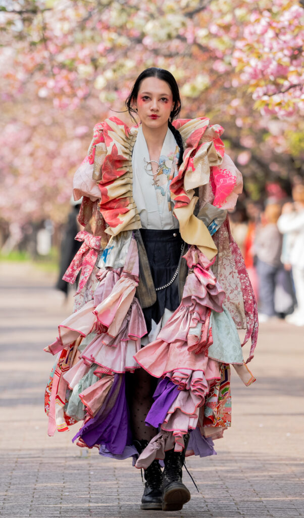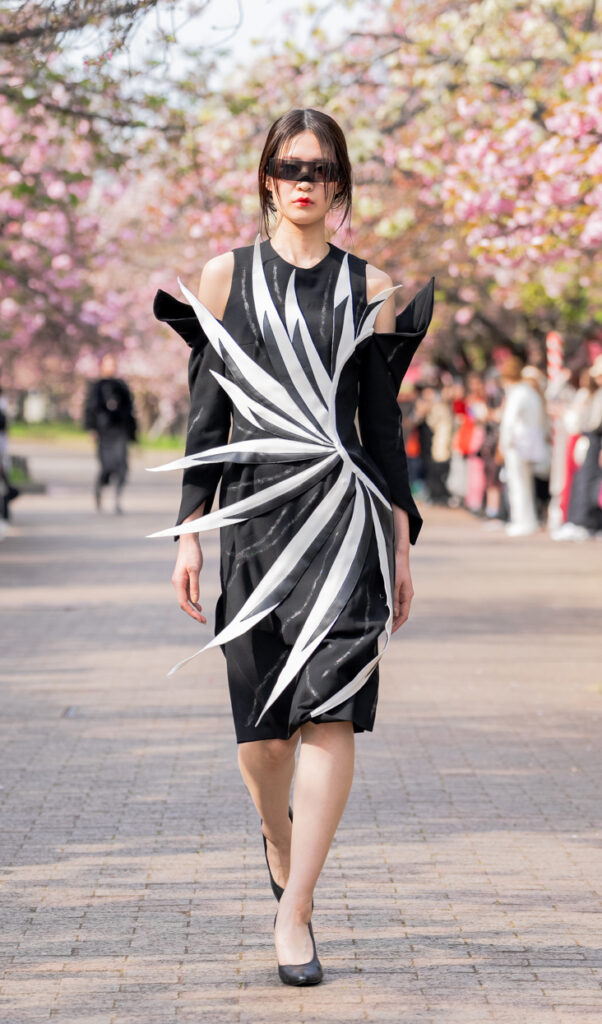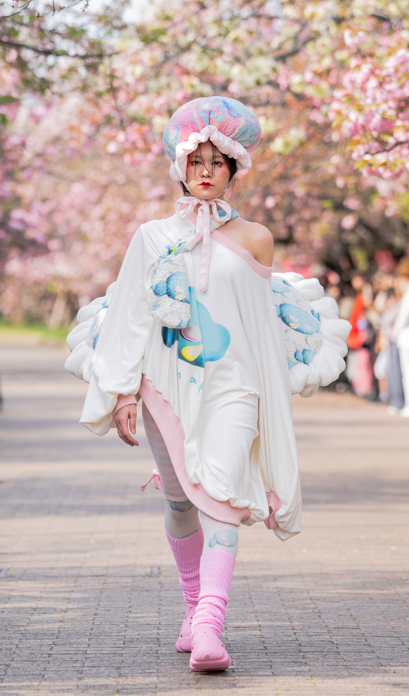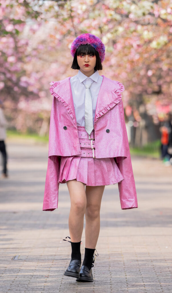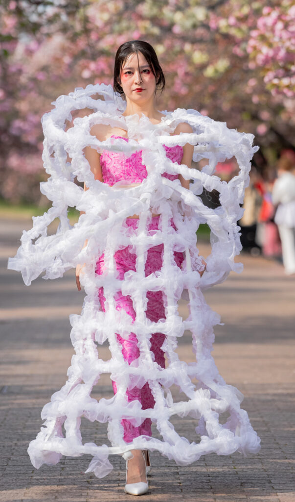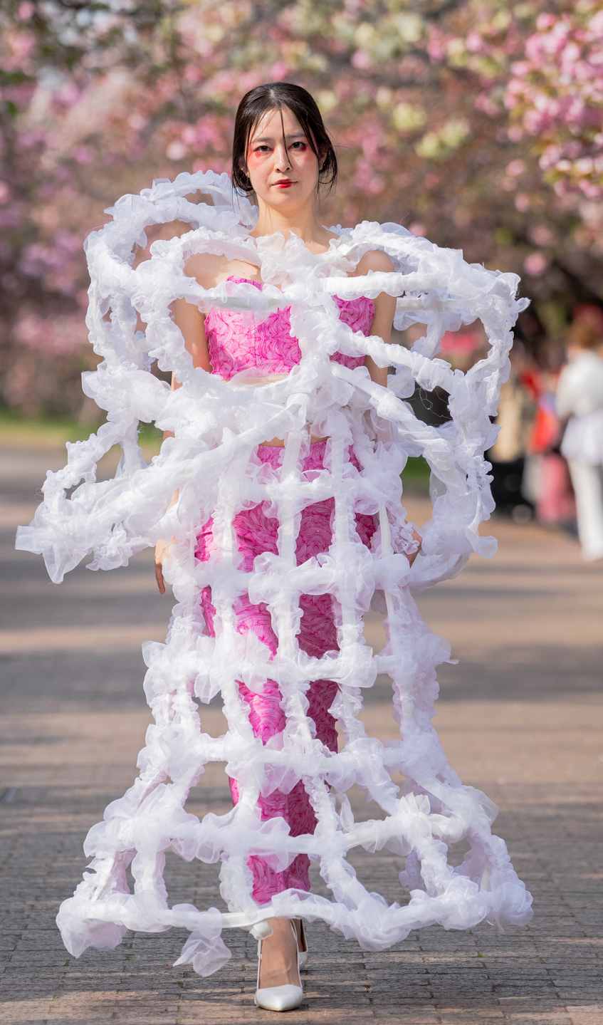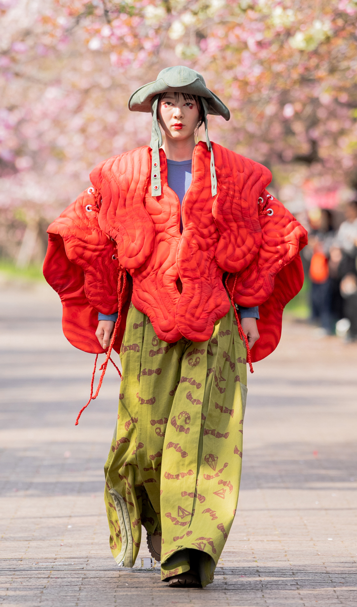 「ASIA FASHION COLLECTION」(主催:株式会社バンタン 株式会社パルコ)でグランプリを獲得し、今年2月ニューヨークコレクションでランウェイデビューを果たした学生ブランド「KIYOKA HASE」をはじめ、大阪文化の学生が手がけるハイレベルな作品が、桜並木のランウェイを彩り、「桜の通り抜け」の新たな魅力を発信しました。