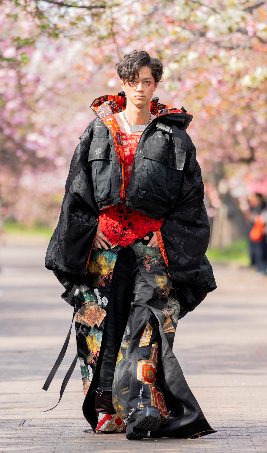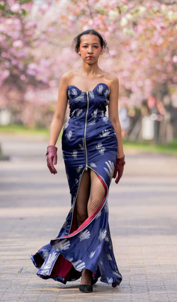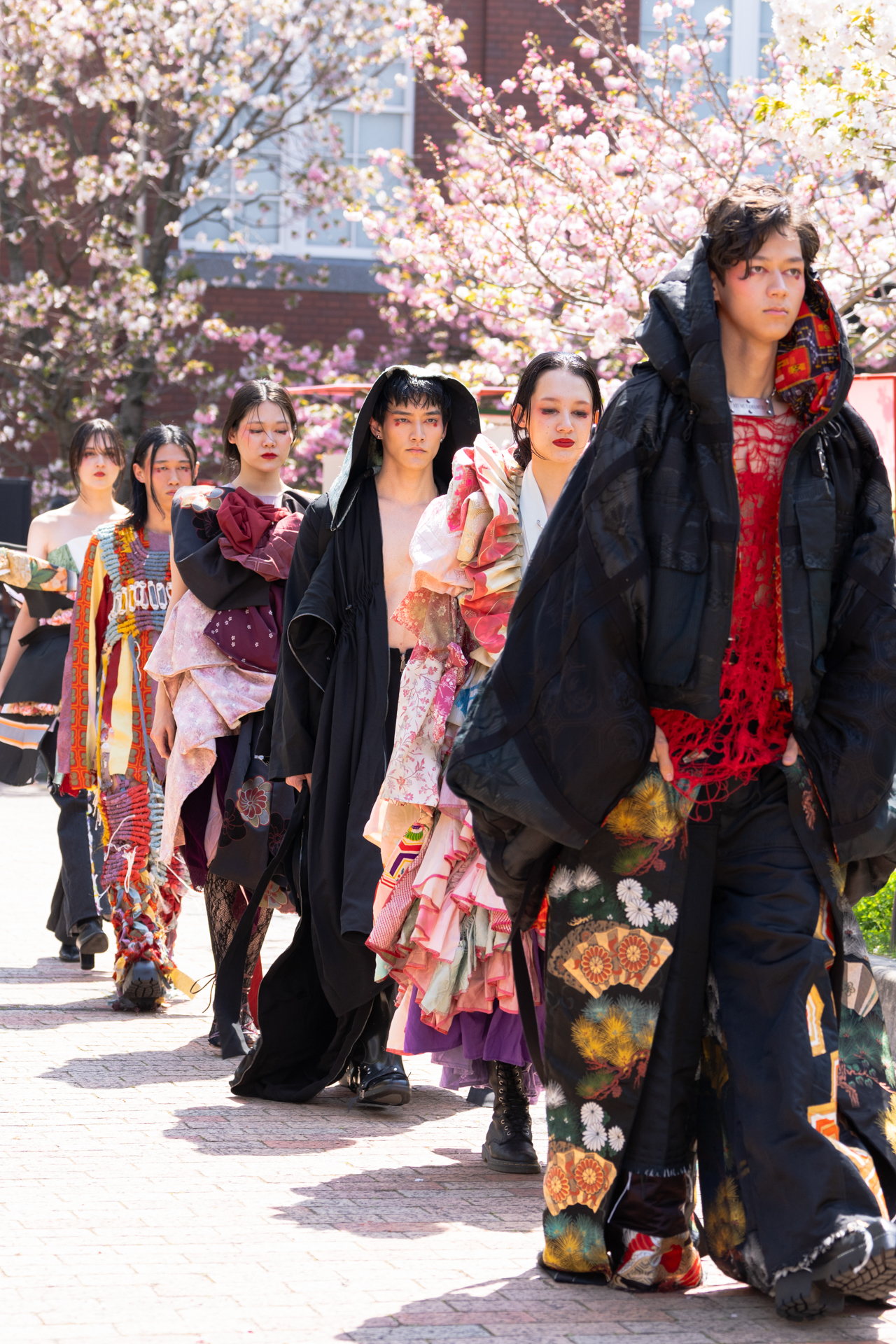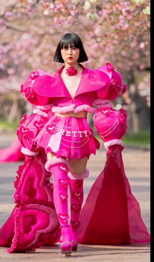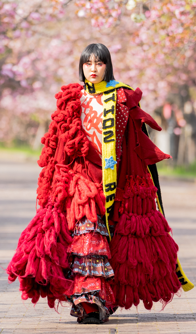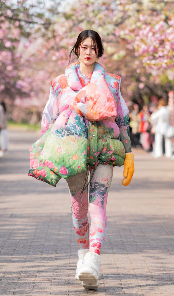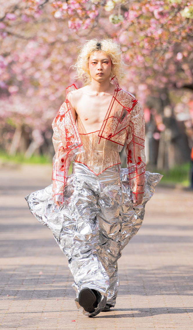 「ASIA FASHION COLLECTION」(主催:株式会社バンタン 株式会社パルコ)でグランプリを獲得し、今年2月ニューヨークコレクションでランウェイデビューを果たした学生ブランド「KIYOKA HASE」をはじめ、大阪文化の学生が手がけるハイレベルな作品が、桜並木のランウェイを彩り、「桜の通り抜け」の新たな魅力を発信しました。
