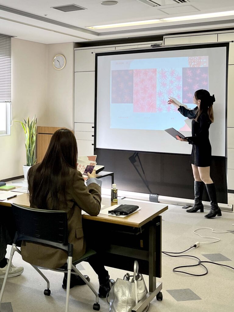 企業デザイナーとしての仕事の流れを把握し、卒業後に即戦力として活躍できる能力向上を図るため、企業、ブランドリサーチを含め、柄のデザインを手掛けることができる今回の企業コラボ。学生たちにとって非常に貴重な経験となりました。