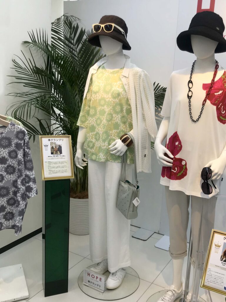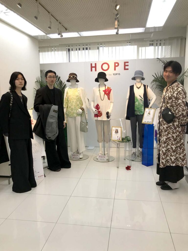 また、「テキスタイル/二次加工コンテスト2024S/S」では、ファッション・クリエイター学科アパレルデザイナーコース2年生のグループが準グランプリを受賞!5月15日(水)~21日(火)に、京都髙島屋3F POPUPステージ34で展示販売が行われました。