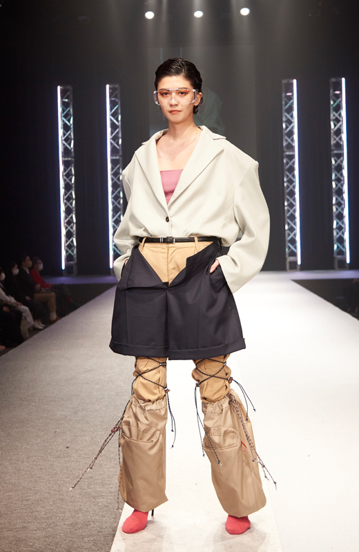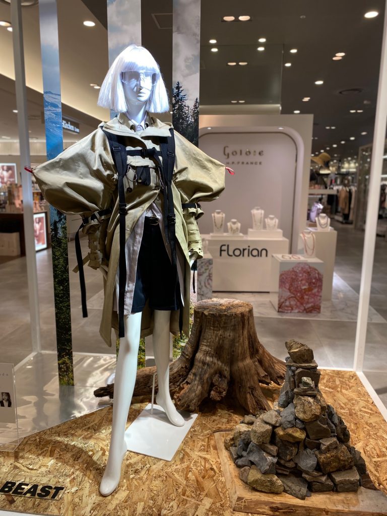 これは、特別審査員として今回より参加の阪急百貨店のモードゾーンを率いる ファッションディレクション部 朝比奈理江 ディビジョンマネージャーが選出した賞で、国内外のハイブランドが立ち並ぶ同店3階、いわゆる「モードフロア」での展示が急遽決定したものです。