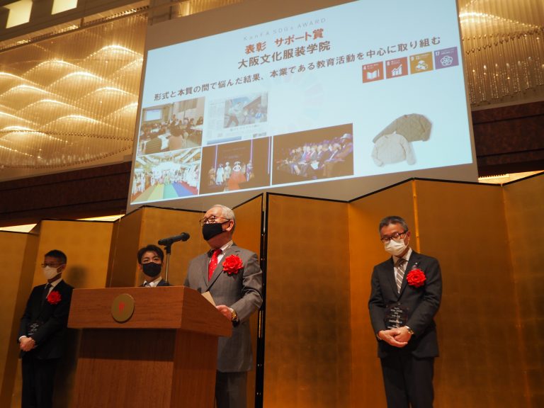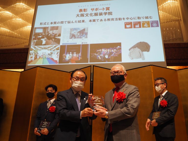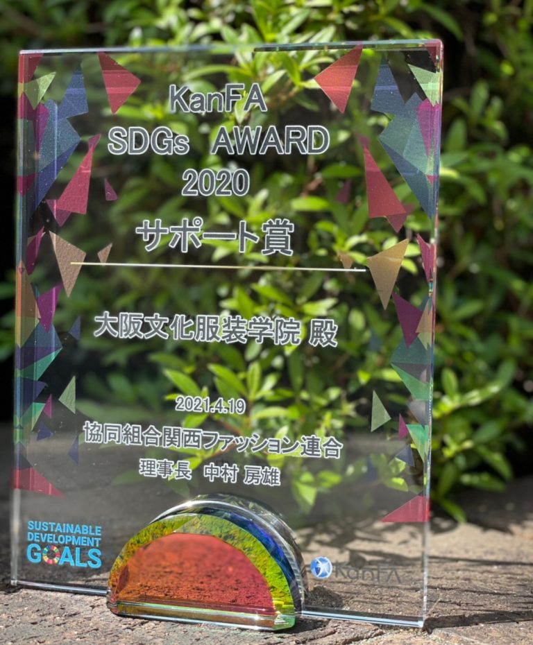 我們大阪文化服裝學院在“合作社關西時尚聯合會 (KanFA) ”主辦的“2020年KanFA SDGs AWARD”上被選為“支持獎”,約有600家關西服裝公司等,受到表彰。